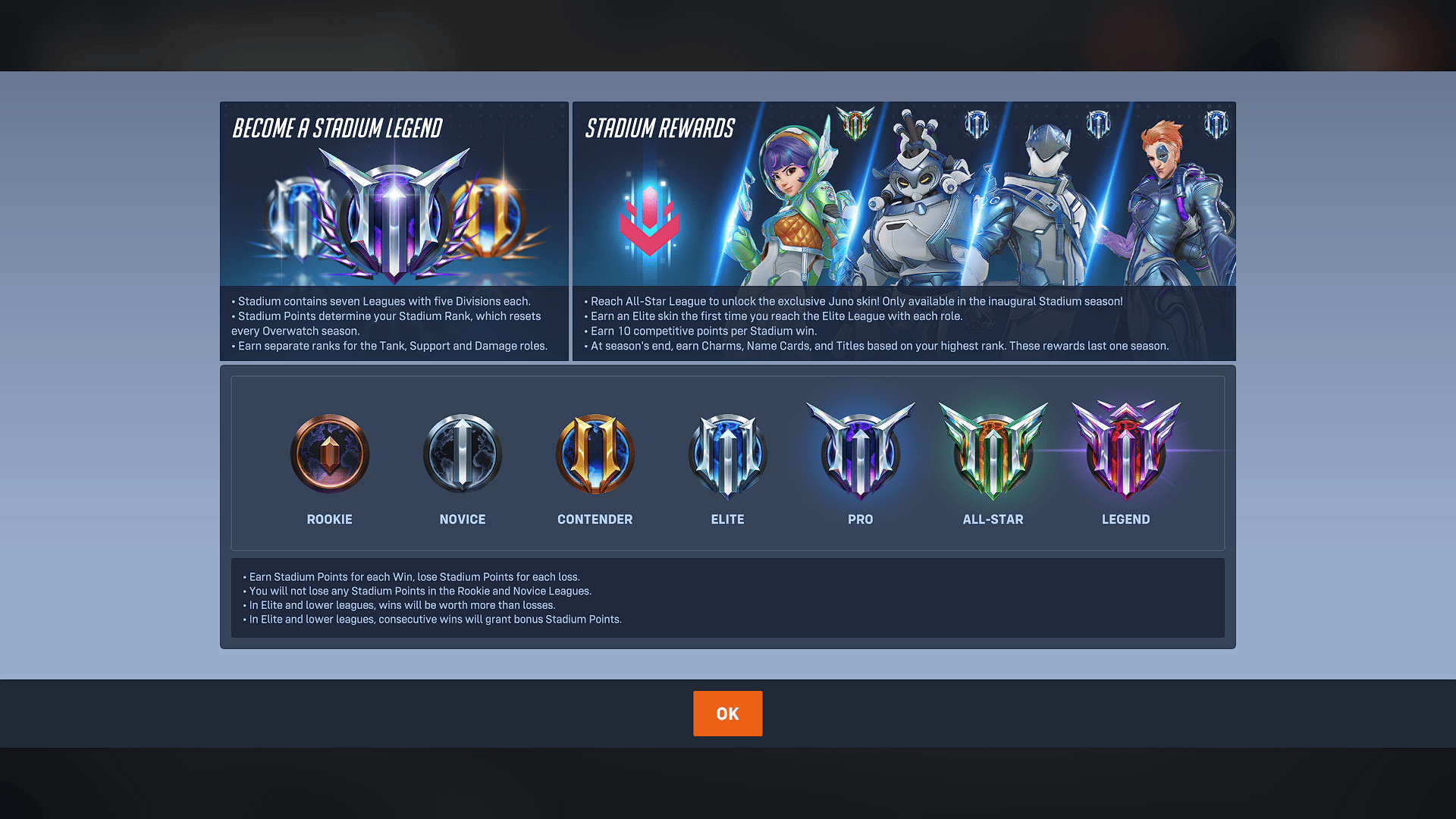 Aspectos del Pase de Batalla de la Temporada 16 de Overwatch 2 Estadio
