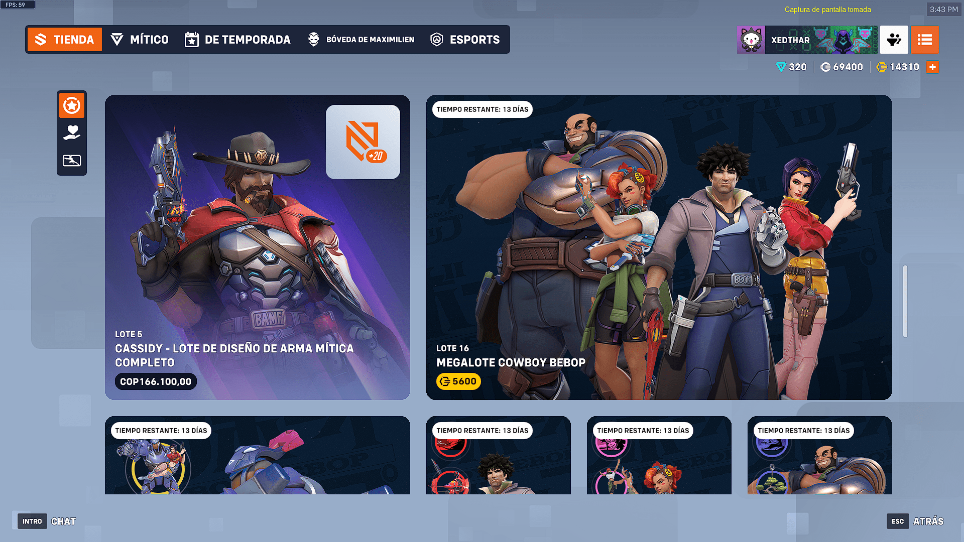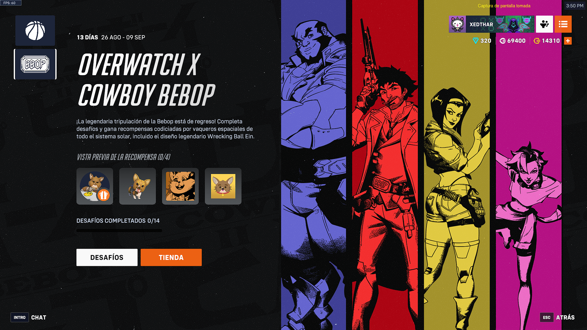 Como bonus tenemos una colaboración anterior que es la primera en volver y es la de Cowboy Bebop, vuelven todos sus aspectos y desafíos en los que podrás obtener la experiencia, el aspecto y los cosméticos. Estarán disponibles hasta el 9 de septiembre del 2025.