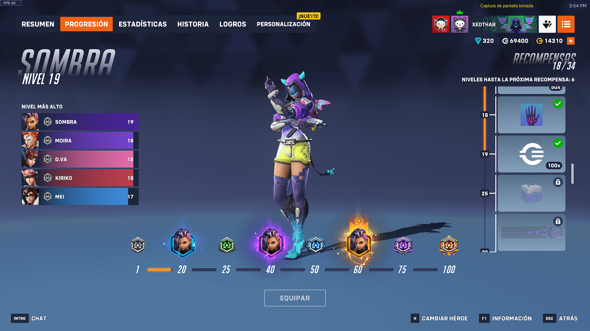 Ahora llega una progresión 2.0 llamada, la cual traerá recompensas cosméticas y unos marcos para cada héroe. Entre más juegues con tus héroes favoritos sin importar el modo, vas a tener la posibilidad de adquirir cosméticos del héroe como tal y cajas épicas y legendarias. Y además se va a tener un marco por cada héroe que demuestre tu cariño o para que los demás sepan cuál es tu main.