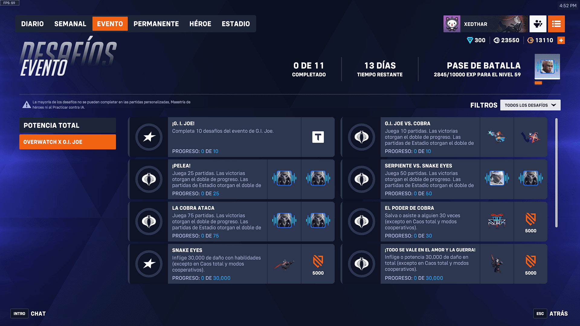 La lucha de la libertad se hace mediante desafíos que dan recompensas esprays, líneas de voz, un título y experiencia para el pase de batalla. Estos desafíos se hacen de manera muy sencilla, solo jugando, activando habilidades o curando o usando tu ultimate, se realizarán y lograras ser un Joe. Infortunadamente en estos desafíos, en esta ocasión no hay ningún aspecto gratuito entre las recompensas.