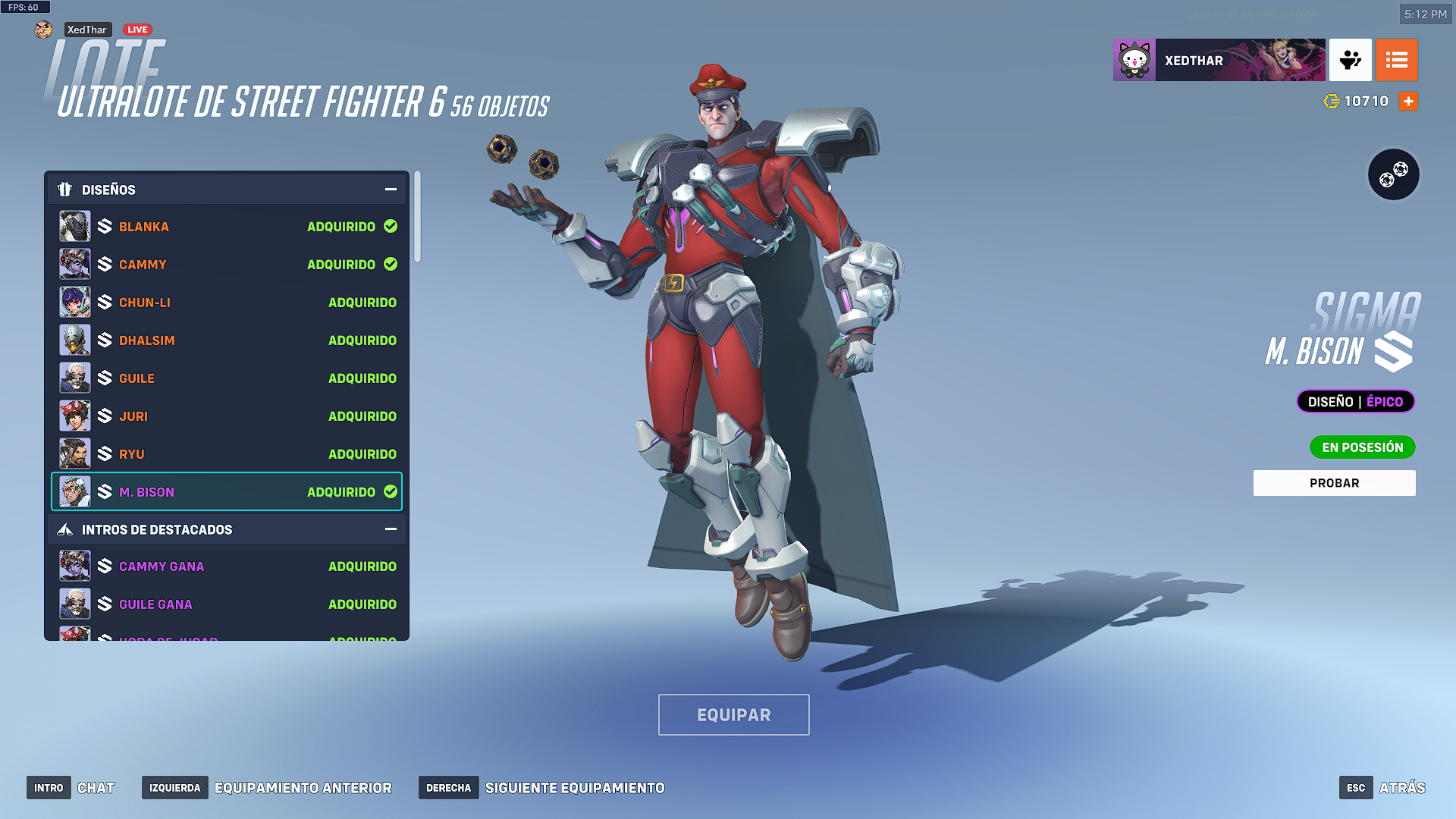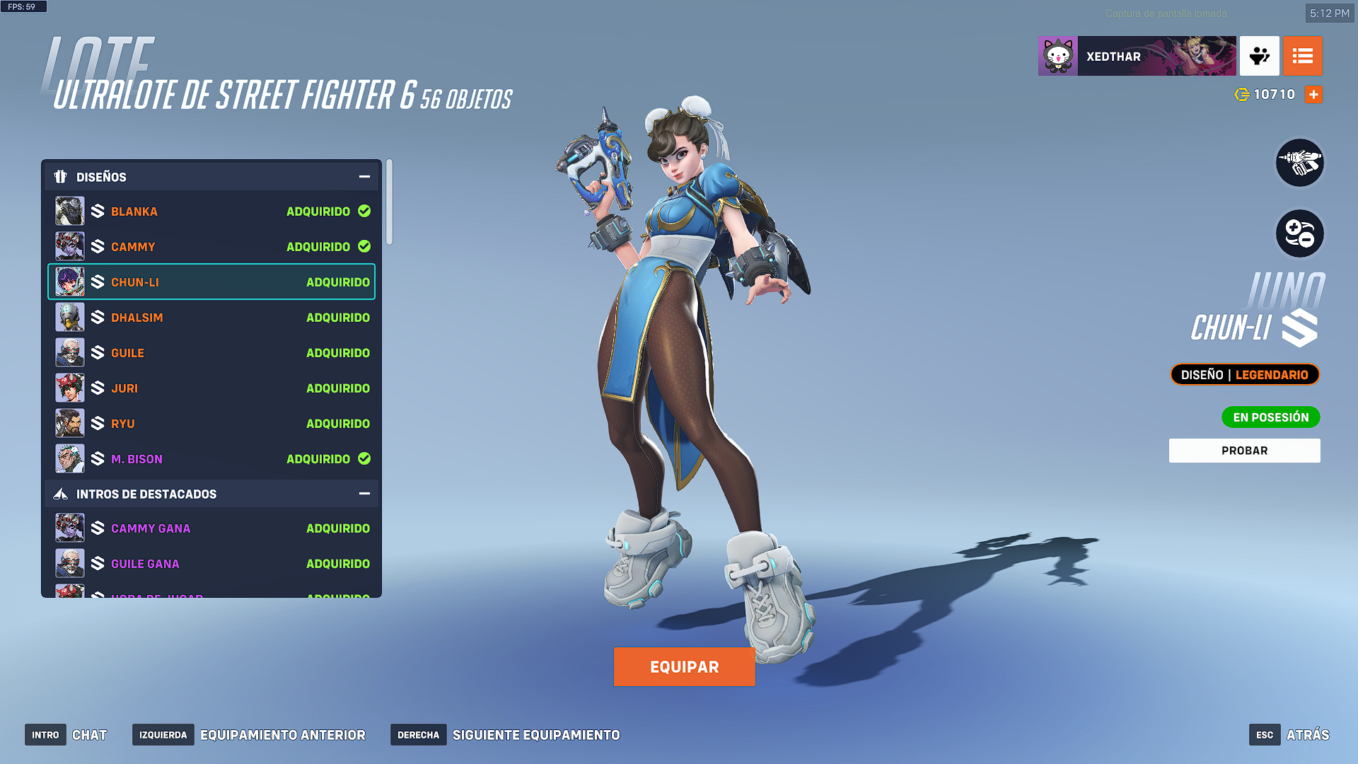 - Ultralote de Street Fighter 6: Por un valor de 9900 monedas de Overwatch, se consiguen los 8 aspectos con sus extras.