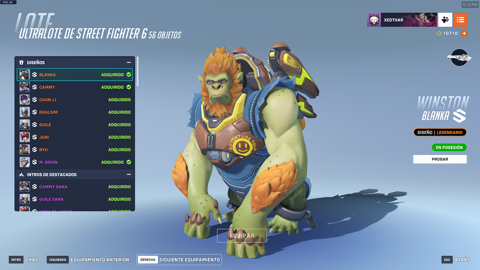 - Winston como Blanka: Aspecto, intro destacada, gesto, pose de victoria, y icono de jugador.