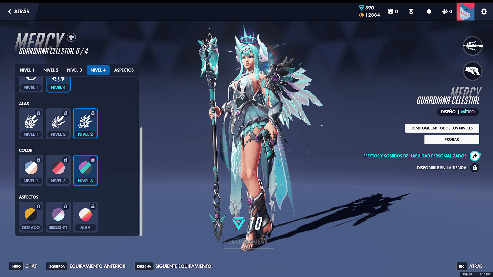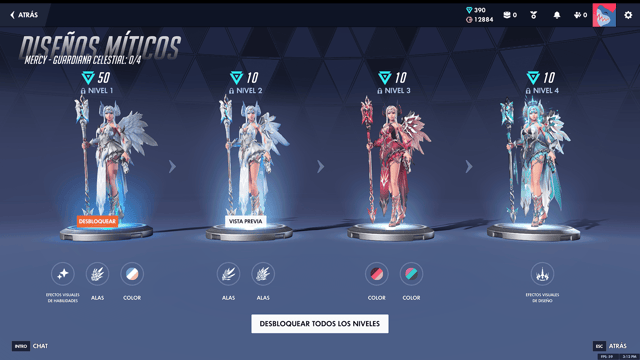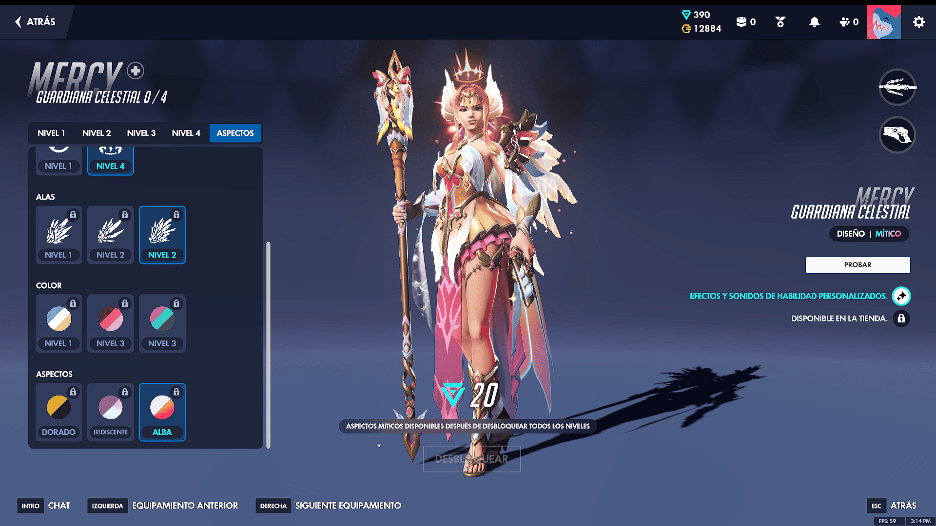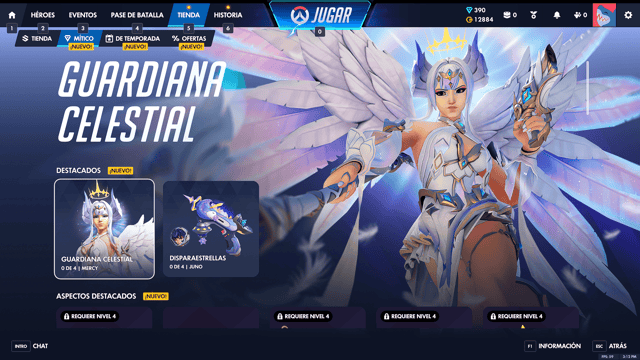 Ahora es más común que tengamos la oportunidad de conseguir dos aspectos míticos en cada temporada. En esta ocasión el primer aspecto mítico es para Mercy: Guardiana Celestial con un valor de 80 prismas míticos, haciéndola poseedora de su segundo aspecto mítico. Adicionalmente siguen los colores dorado e iridiscente, pero se agrega un nuevo color por 20 prismas adicionales llamado Alba.