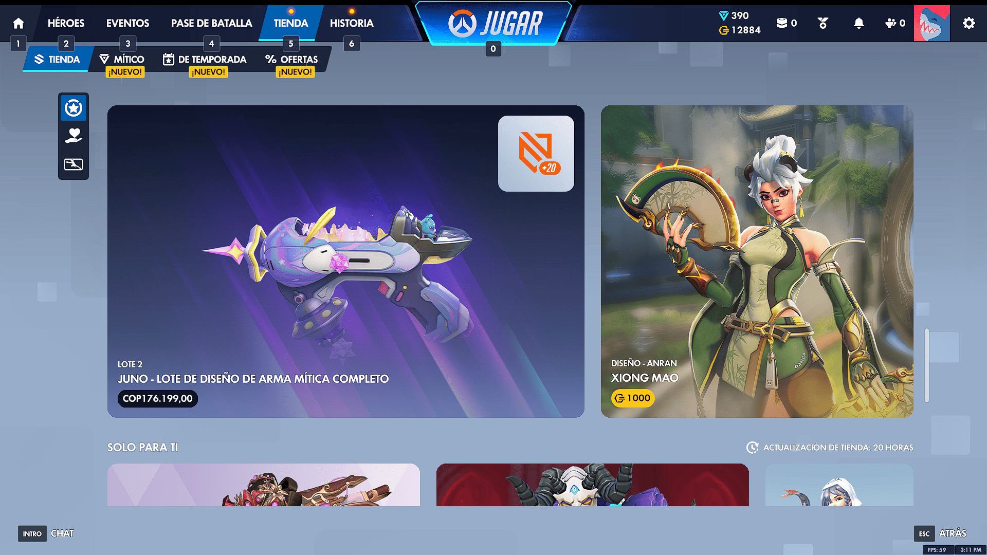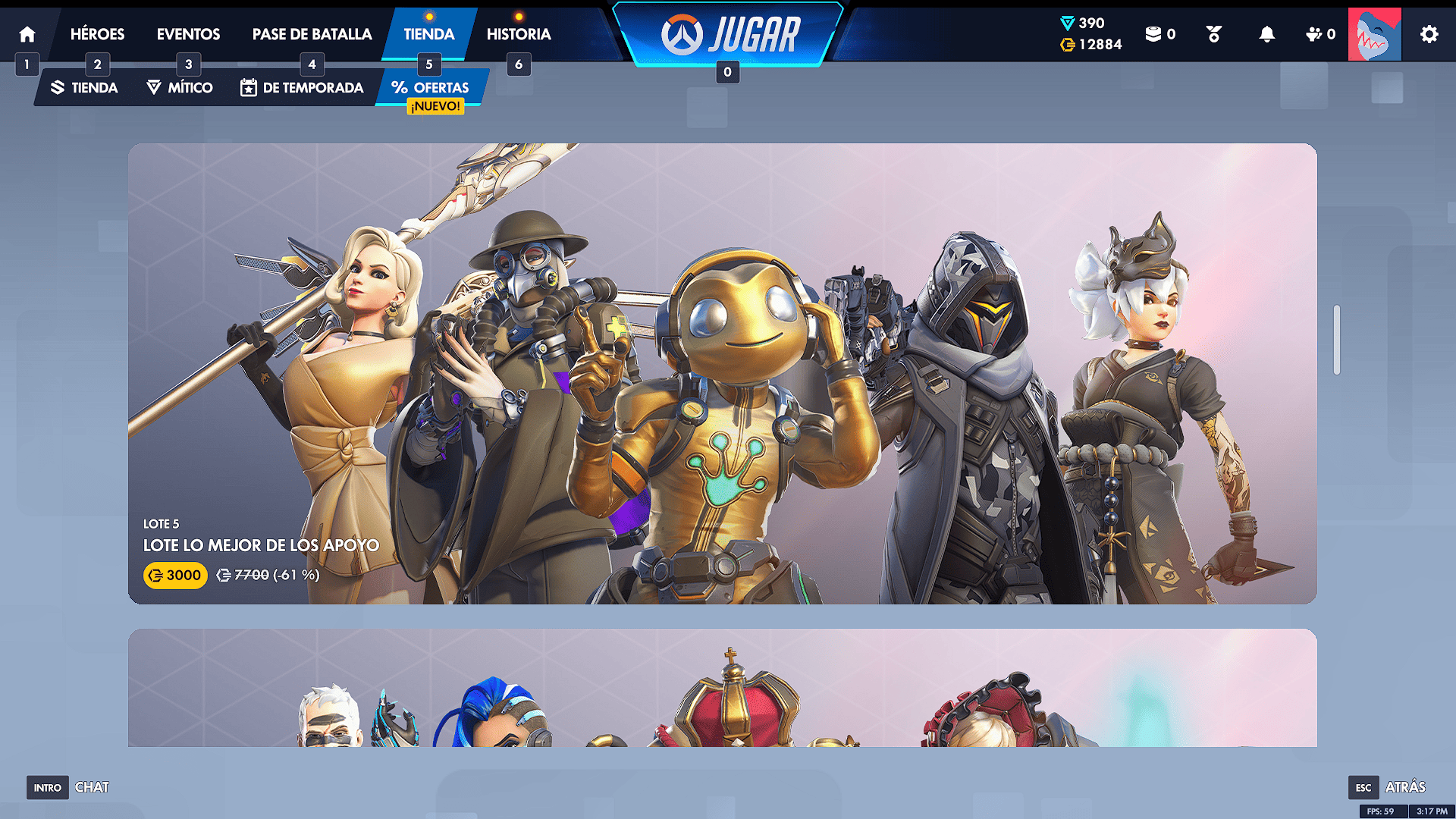 Consejo de El Botón A: No olvides visitar la tienda en la última pestaña hay ofertas de skins por cada héroe con un gran descuento.