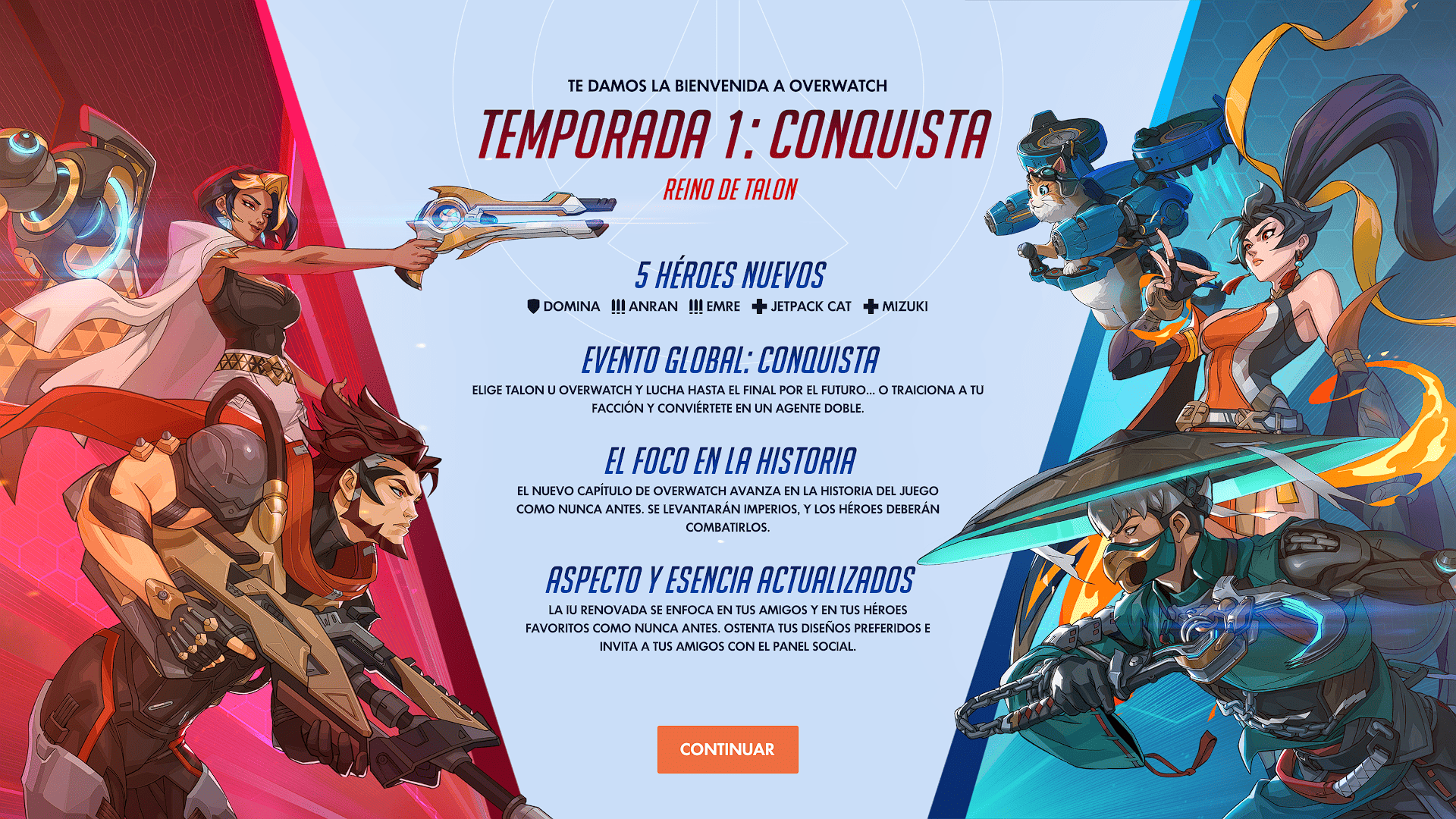 La historia gira en torno a la reorganización de Talon bajo un nuevo liderazgo, alterando el equilibrio de poder y redefiniendo las lealtades de varios héroes. Este conflicto no solo existe en cinemáticas o comics, sino que influye directamente en el juego a través del evento principal y que da nombre a la temporada Conquista, donde los jugadores eligen entre Overwatch o Talon y contribuyen con su progreso global. Claro que con el paso de las misiones se puede volverse un doble agente y cambiar de facción.
