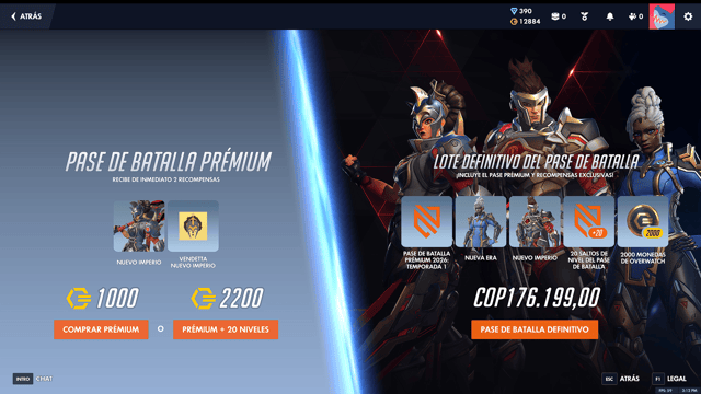 Se tienen diferentes maneras de adquirir el pase de batalla con diferentes mejoras, la primera es el pase premium por 1000 monedas de overwatch que permite desbloquear el pase y adquirir todas las recompensas. La segunda es adquirirlo por 2200 monedas de overwatch el cual trae lo mismo que el premium con la adición de 20 niveles desbloqueados inmediatamente, de estas dos maneras se consigue el aspecto de Vendetta de manera inmediata y la tercera es comprar con dinero real el paquete del pase de batalla definitivo de la temporada 1 por un valor de 176.199,00 COP, el cual trae las mejoras anteriores y también de manera inmediata los aspectos legendarios Sojourn nueva era y Emre nuevo imperio, además de 2000 monedas de overwatch.