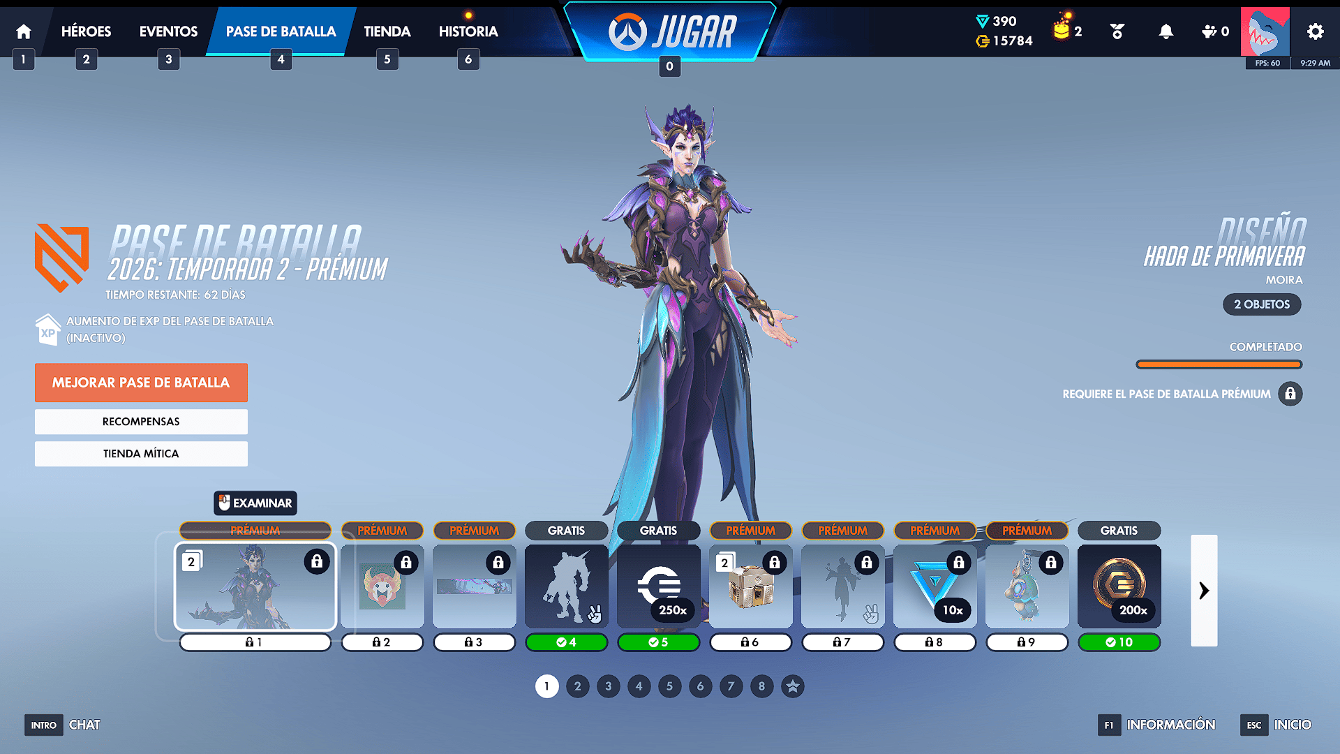 Este pase de batalla de la temporada 2 llega como se esperaba, con una coherencia en todos los aspectos de los héroes que en esta ocasión son hadas y fantasía, las recompensas adicionales van de la mano con el contenido del pase y los aspectos míticos de la temporada. Se consiguen iconos de jugador, líneas de voz, tarjetas de presentación, amuletos, gestos, intro de las partidas, cajas legendarias, monedas de overwatch y mucho más.