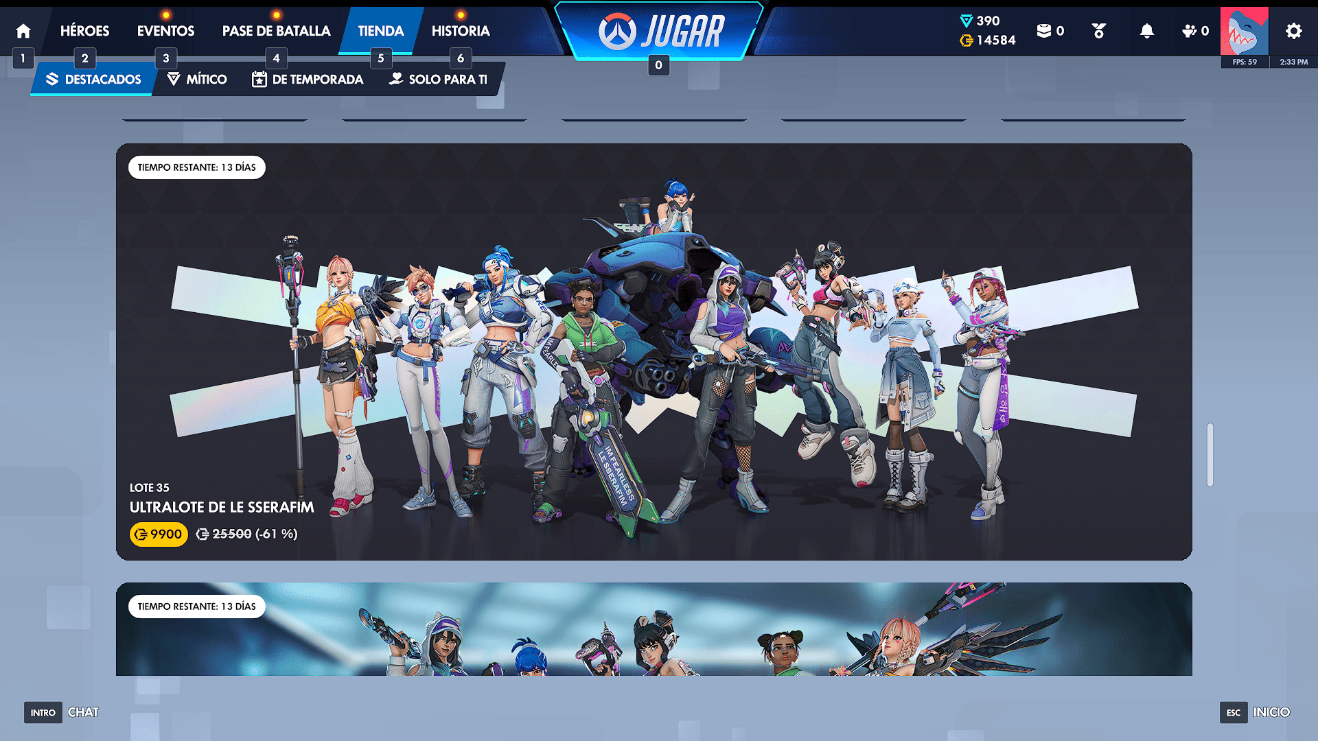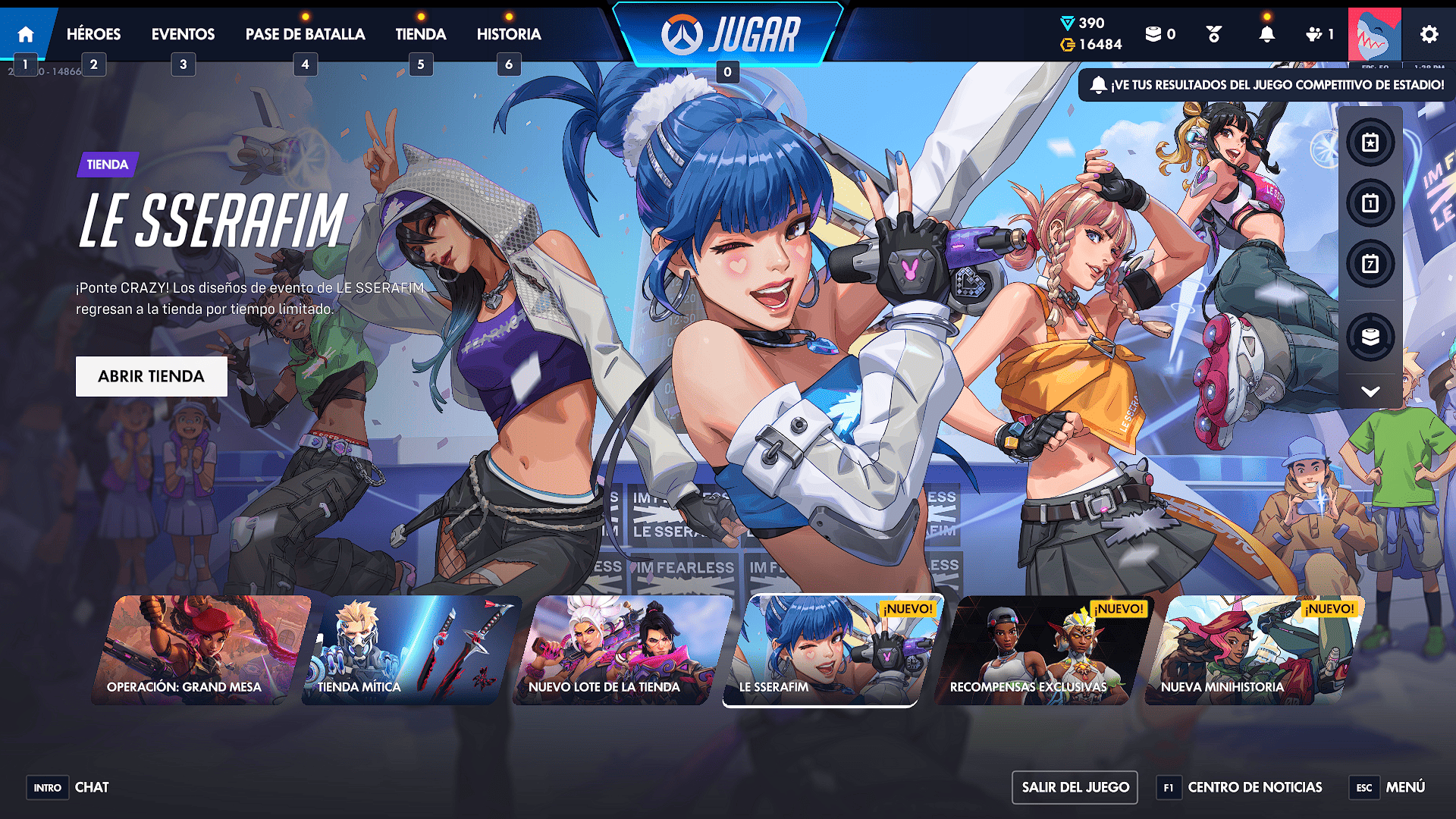 Llega algo que la comunidad esperaba, llegan desde Korea las tres colaboraciones con el grupo K-Pop Le Sserafim, con sus megalotes y el ultralote que posee un gran número de aspectos con sus respectivos gestos y demás accesorios. También se pueden adquirir de manera singular por la pestaña de héroes y comprarlo por 1900 monedas de overwatch.