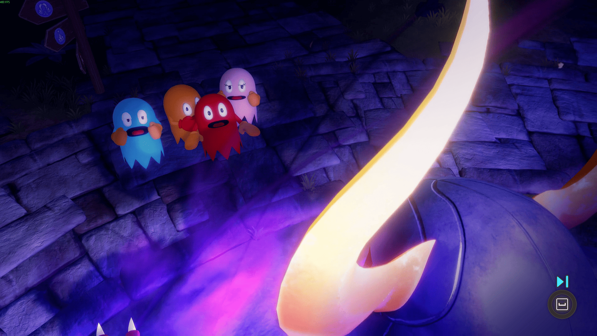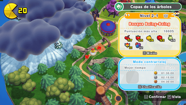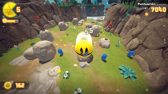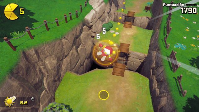 El núcleo de Pac-Man World 2 Re-Pac sigue siendo el plataformeo 3D de la vieja escuela. Pac-Man salta, rebota con su clásico “butt-bounce”, patea, rueda al mejor estilo de otro personaje (Que pronto tendrá su disfraz en una colaboración) y lanza pellets con algo precisión. El control es fluido, sencillo y preciso, con detalles como un círculo indicador al caer que evita frustraciones la mayor parte del tiempo. La estructura mantiene un hub central que es Pac-Land, desde donde se accede a niveles variados: bosques, mundos de hielo, volcanes o escenarios acuáticos.