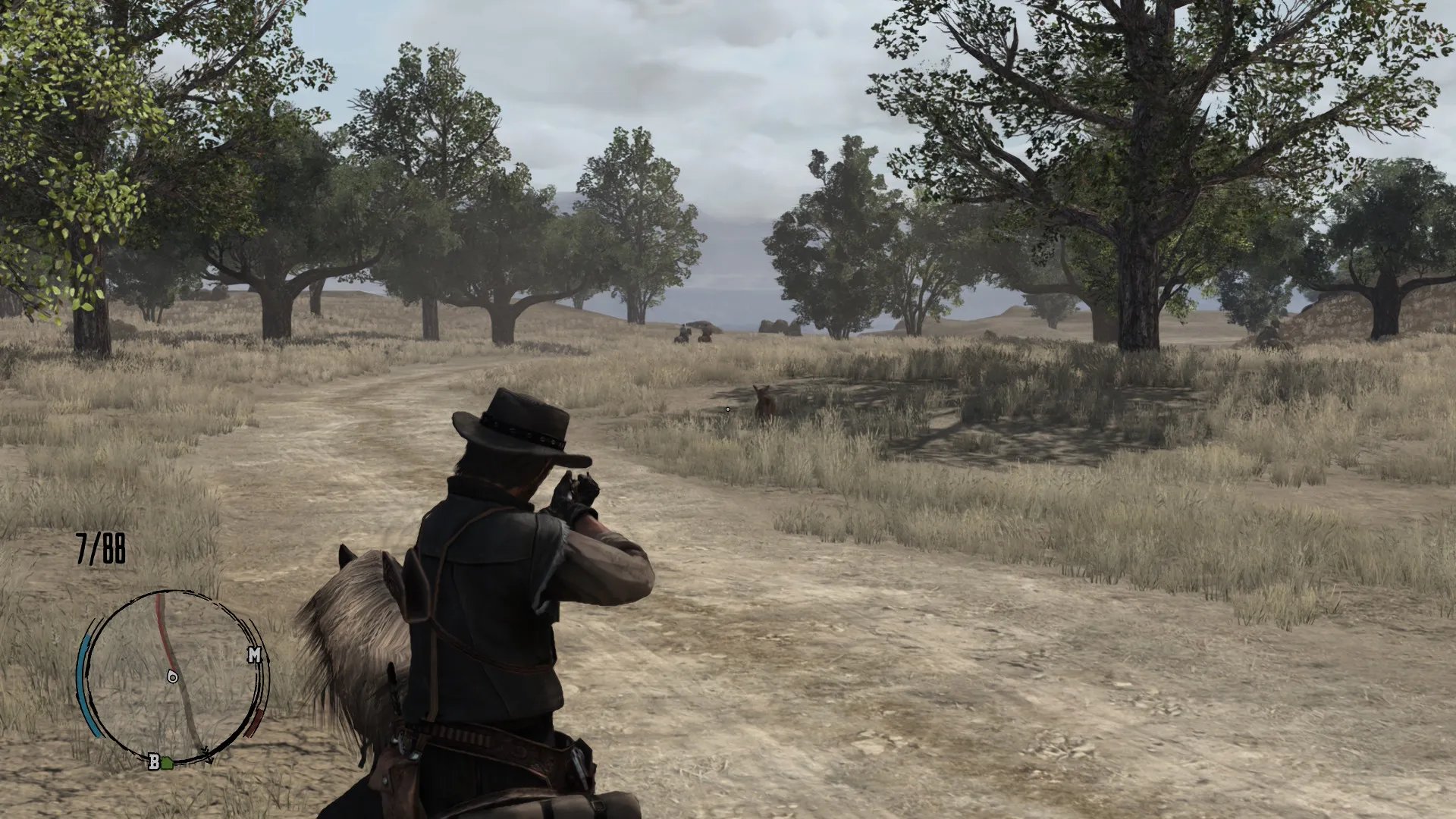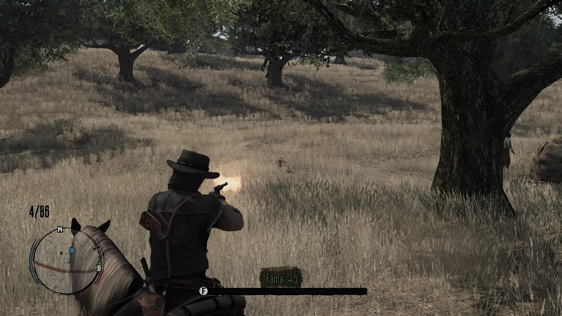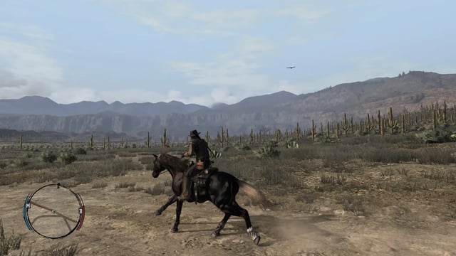 El sistema de tiro con Dead Eye permite ralentizar el tiempo para marcar objetivos múltiples, combinado con cobertura dinámica y armas de época como revólveres Schofield o rifles Winchester. El combate a caballo añade caos con galopes y disparos en movimiento, mientras el sigilo en campamentos enemigos exige planificación. La montura principal se personaliza con sillas y razas, influyendo en velocidad y resistencia durante travesías extensas.