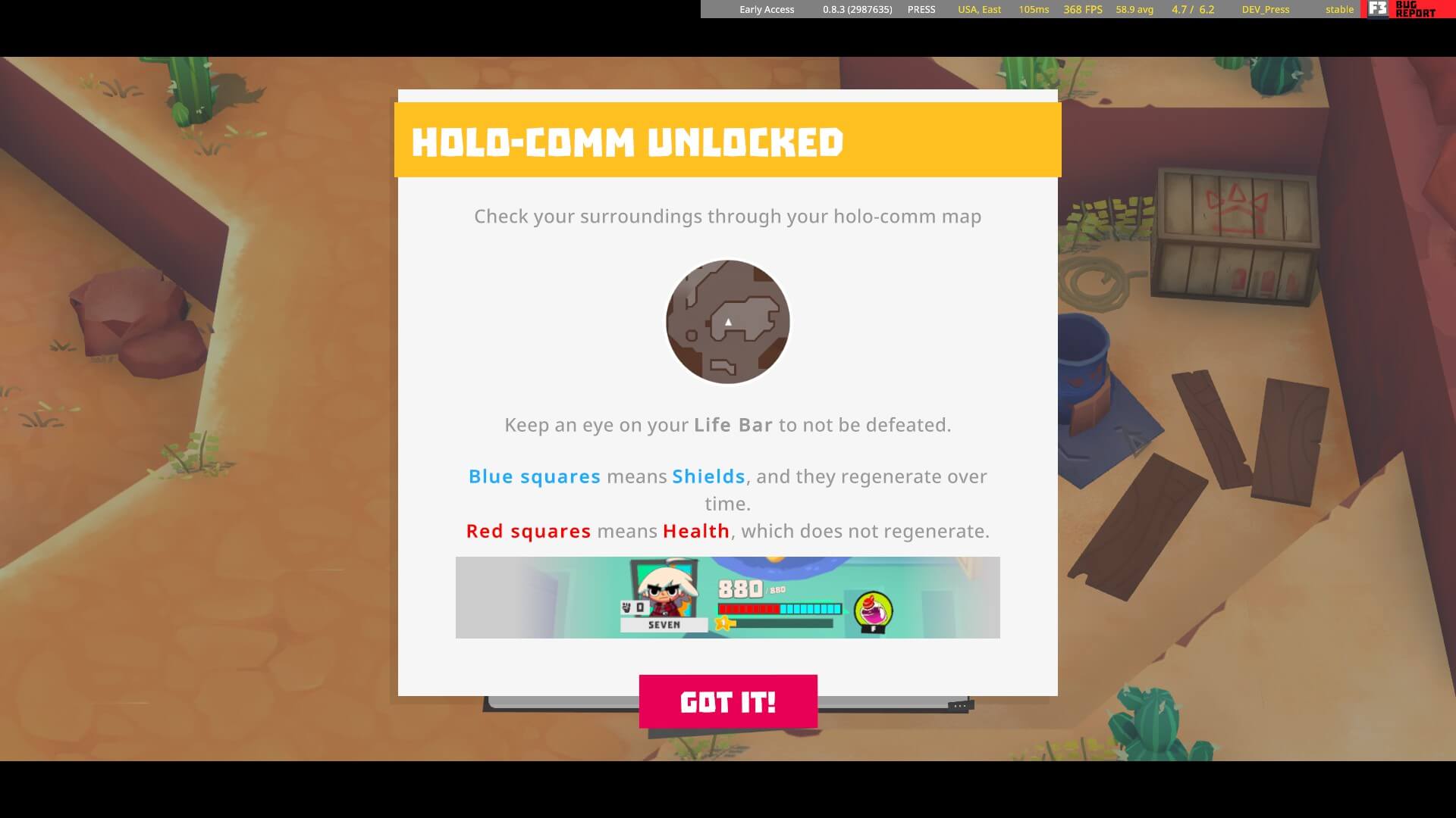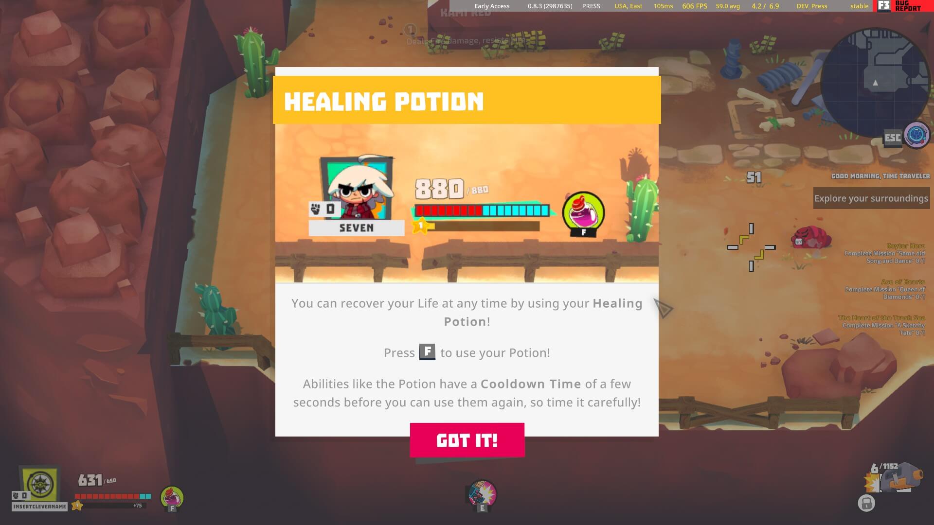 Pero no solo tenemos armas, también tenemos habilidades especiales que iremos desbloqueando a medida que subimos de nivel, como granadas, ataques melee especiales, ataques en área y finalmente un Ultimate, el cual es capaz de cambiar el rumbo de la batalla. Contamos con arboles de especialización, el cual permitirá definir nuestro estilo de combate, y que a medida que subamos de nivel, conseguiremos los puntos necesarios para enfocar nuestro estilo. En cuanto al rooster de personajes, en Relic Hunters Legend, contamos con Pinkyy, Jimmy, Raff, Ace, Bui, Panzer, y el más reciente miembro, Seven. Cada uno esta enfocado en un estilo de combate distinto; algunos pelean a distancia, otros obtienen mayores beneficios en enfrentamientos de combate cercano. Dependiendo de cual sea tu favorito, podrás cambiar de Hunter cuando quieras para irle subiendo su nivel e ir probando su kit de pelea.