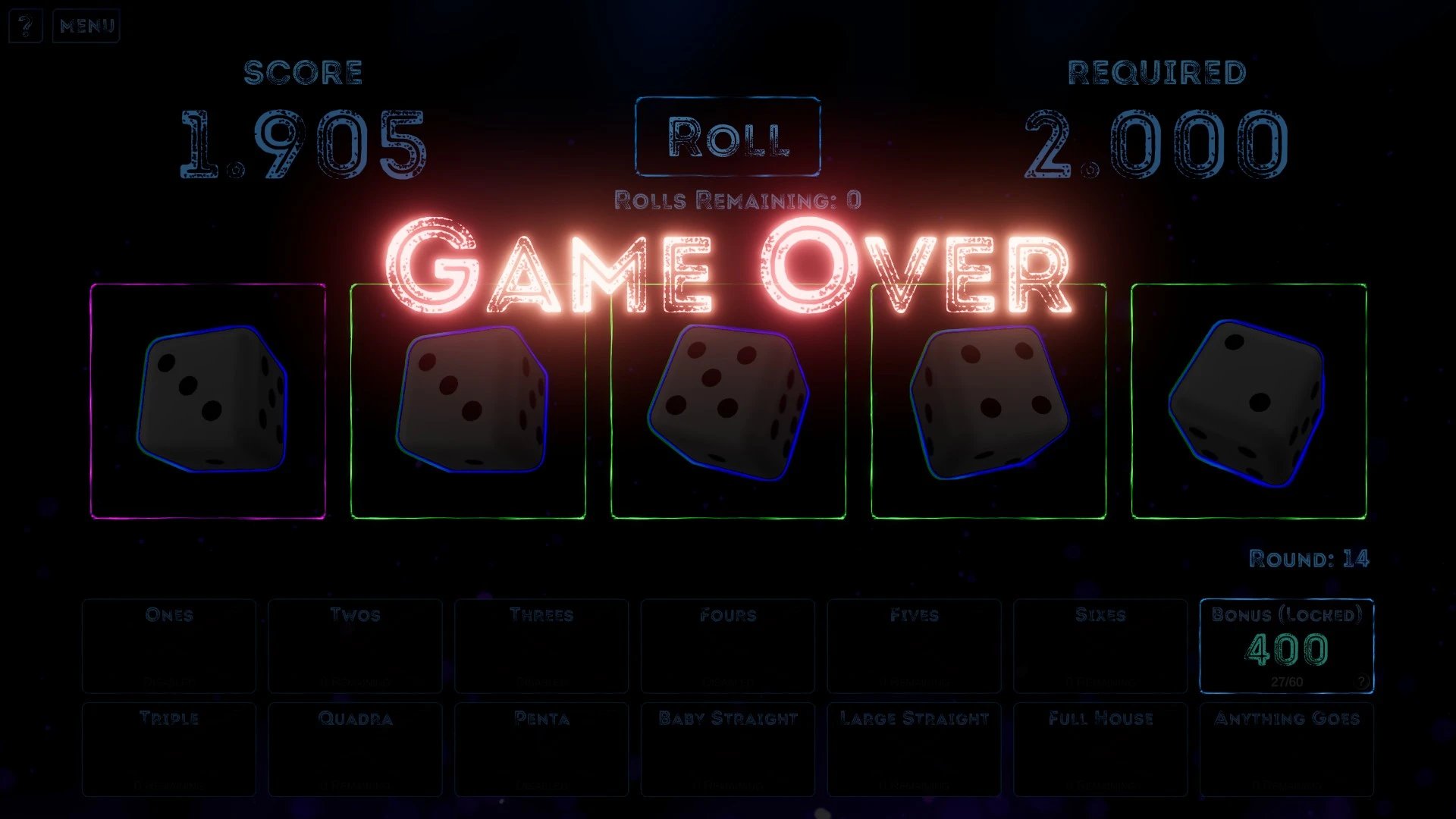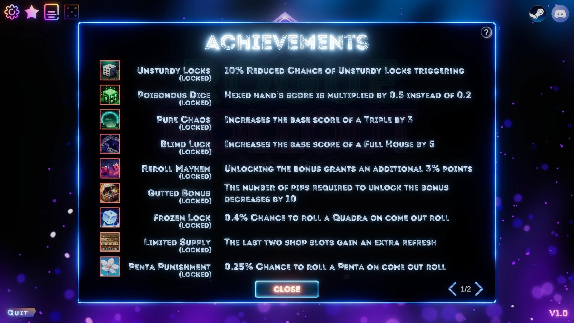 Rogue Rollout se encuentra en un fase de playtest, y es importante que el desarrollador reciba toda la retroalimentación necesaria. Este es un titulo que tiene potencial de convertirse en un excelente titulo, pero que necesita seriamente un rebalanceo de todas sus mecánicas. Por el momento, no podemos recomendar Rogue Rollout, tiene demasiados elementos que destruyen la diversión en un juego de azar, y una mala implementación de elementos rogue-like que convierten cada partida en un reinicio constante para conseguir los efectos que uno requiere. Esperemos que a futuro podamos revisitar este titulo y darle una nueva puntuación.