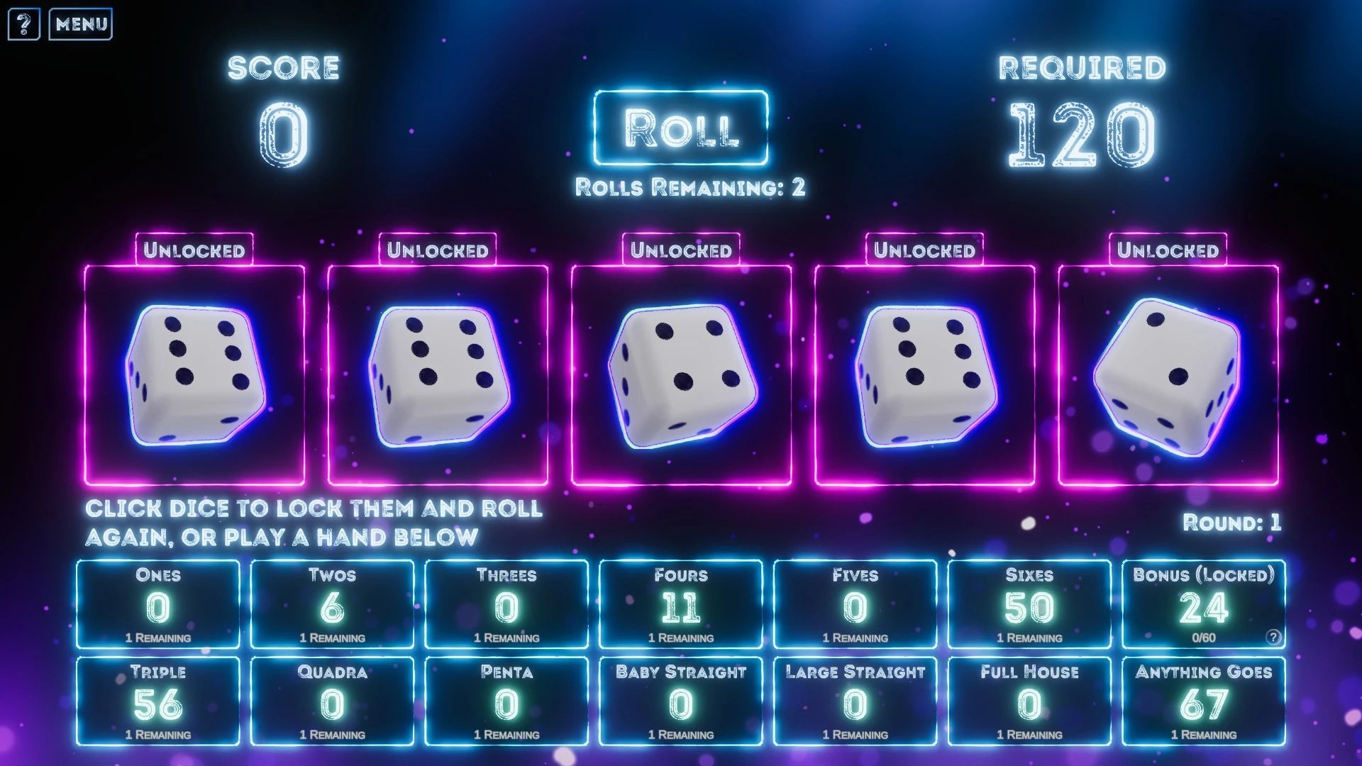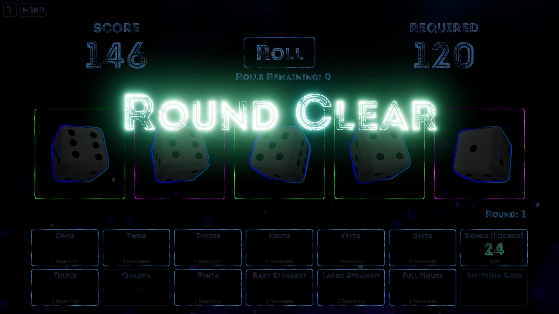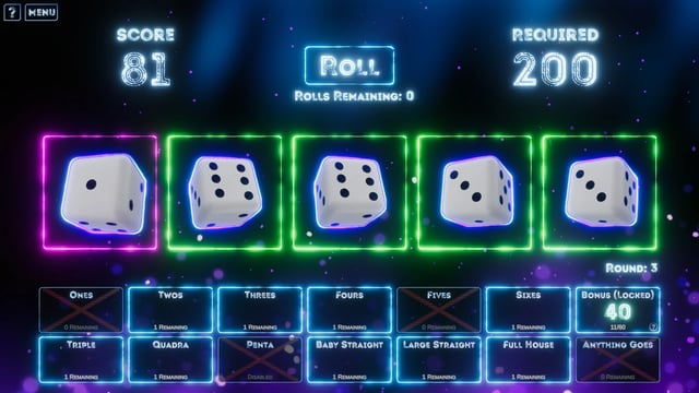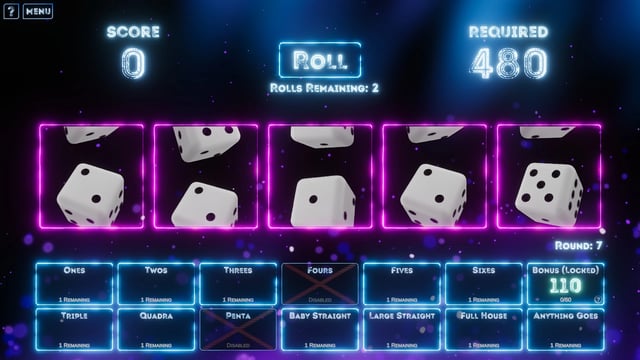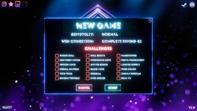 Rogue Rollout es un juego de azar y con elementos de rogue-like, en donde jugaremos por rondas para conseguir puntos y completar requerimientos, para lograr este objetivo usaremos 5 dados, con los cuales buscaremos combinaciones de resultados, y haciendo uso de reliquias, podremos lograr puntuaciones cada vez más altas. ¡A lanzar esos dados!