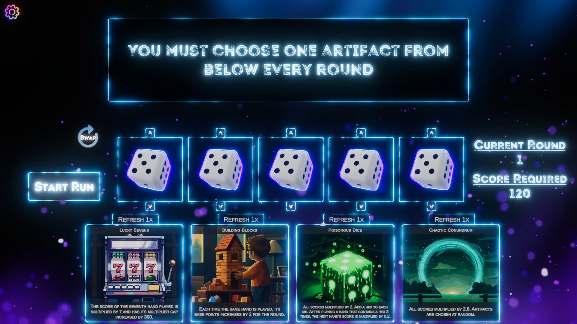 Puede que iniciando la partida, las reliquias positivas tengan efectos mediocres y las negativas efectos supremamente perjudiciales, prácticamente matando cualquier impulso de jugar la partida. Y este es otro tópico importante, hay un desbalance muy grande entre ciertas reliquias y otras; cualquier reliquia con efectos multiplicativos son infinitamente superiores a las de efectos aditivos o que permiten sumar más intentos de puntuación. Y lo mismo ocurre con las reliquias negativas; reliquias que remueven por completo intentos de relanzamiento, reliquias que tienen un chance de hacer que ciertas combinaciones no puntúen (las cuales dicen que tienen un 30% de activar su efecto, pero que en el juego, se siente como si fuera un 100%), y demás medidas disruptivas que destruyen el flujo de juego.