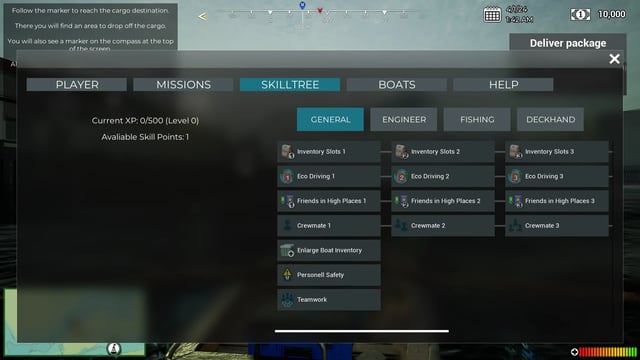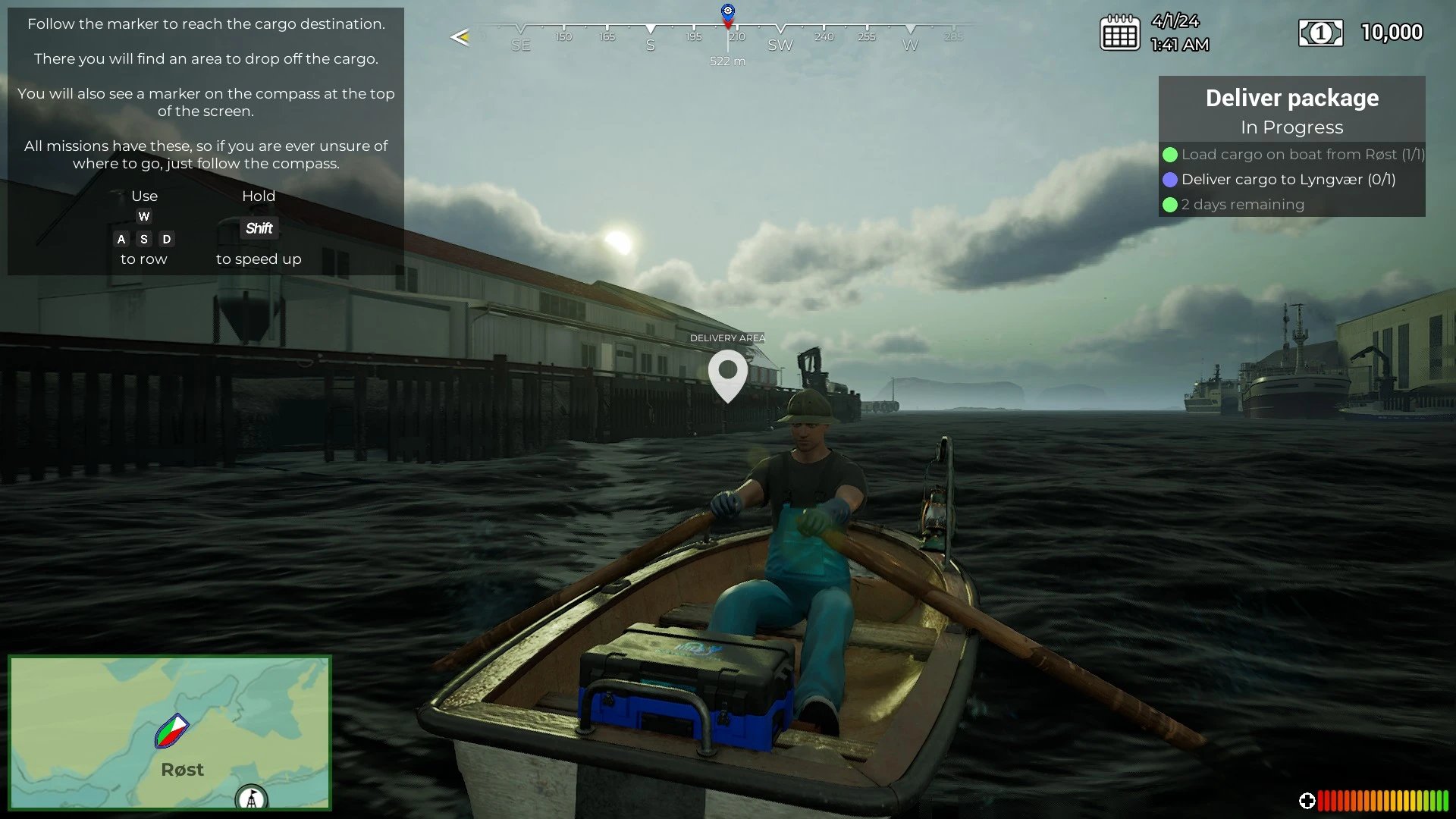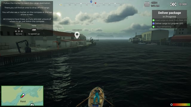 El bucle del juego es bastante simple y crea una dinámica serena en la que nos ocuparemos de nuestro bote y cumpliremos con cuidado con nuestros objetivos. Los controles son bastante simples teniendo dos modos de juego básicamente: el modo primera persona en donde controlaremos a nuestro personaje y podremos levantar cajas y demás objetos para moverlos de un sitio a otro y también podremos pescar, y el modo de navegación, en donde tomaremos el control de nuestro navío y haremos la gran mayoría de circulación en altamar y haremos uso de las distintas herramientas de nuestro bote.