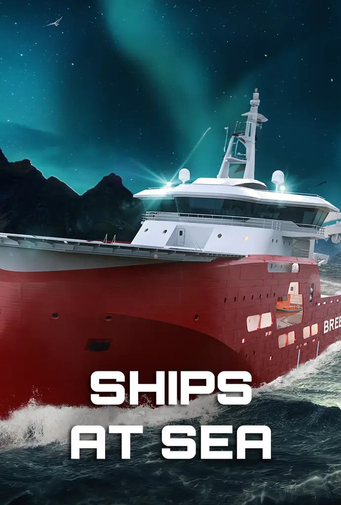 Ships at Sea es un juego de simulación en el que tomaremos el papel de un pescador novato que inicia con un simple bote para empezar a hacer pequeños encargos de puerto en puerto en una sección de mar ficticia en los mares del norte de Europa. Conseguiremos contratos pequeños de transporte de mercancía o de pesca utilizando utensilios simples para ir adquiriendo dinero y poder comprar nuestro primer bote, con el cual podremos conseguir contratos más difíciles, a secciones más lejanas y complicadas. Podremos comprar mejoras para nuestro bote como un mejor motor, hélice y demás aditamentos para poder navegar por más tiempo, con más mercancía y más lejos. Con el dinero adquirido podremos conseguir toda clase de botes para cumplir distintos tipos de contratos, como de transporte de carga pesada o para llevar turistas para ver ballenas, hasta conseguir botes de rescate en altamar.