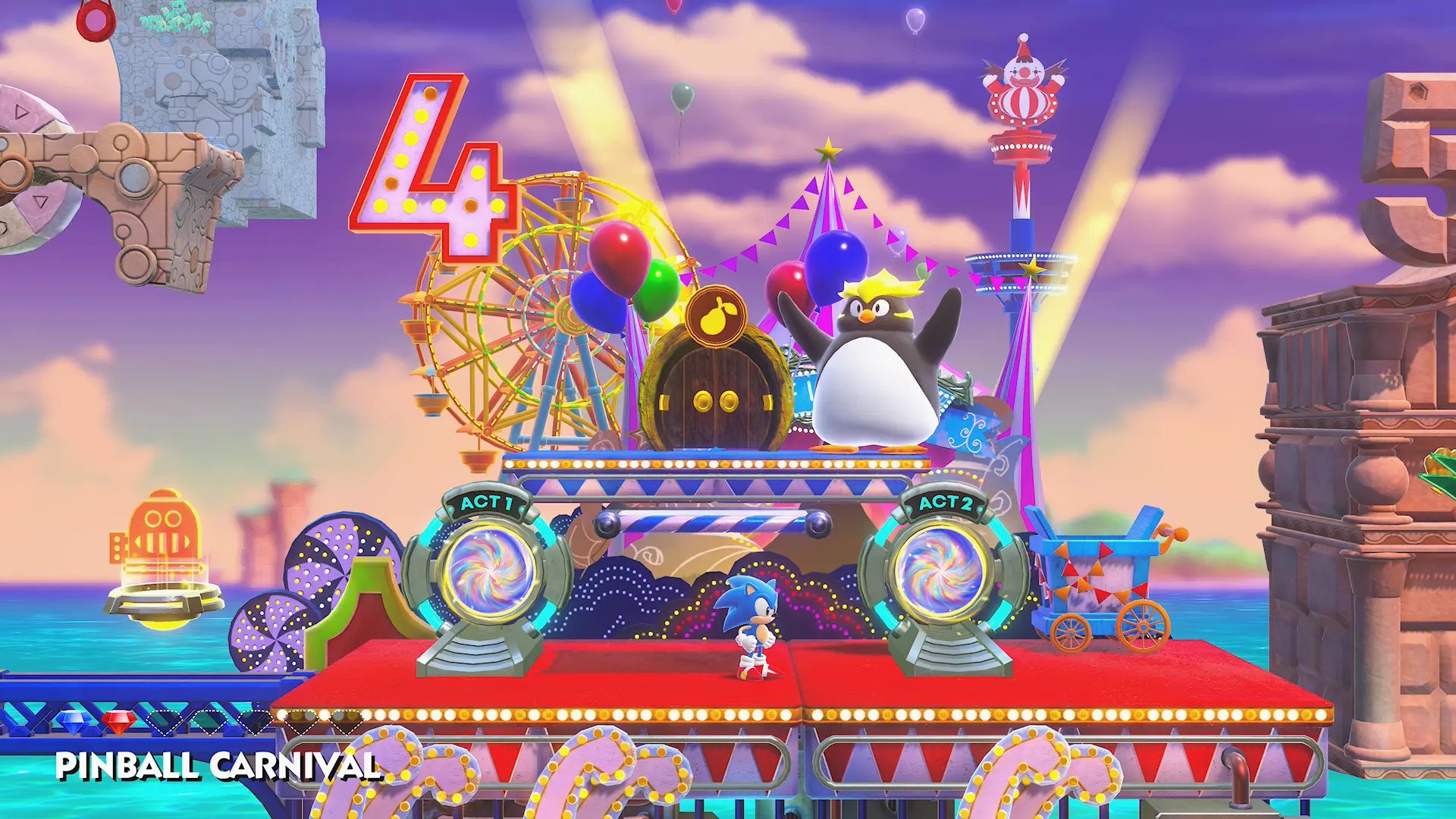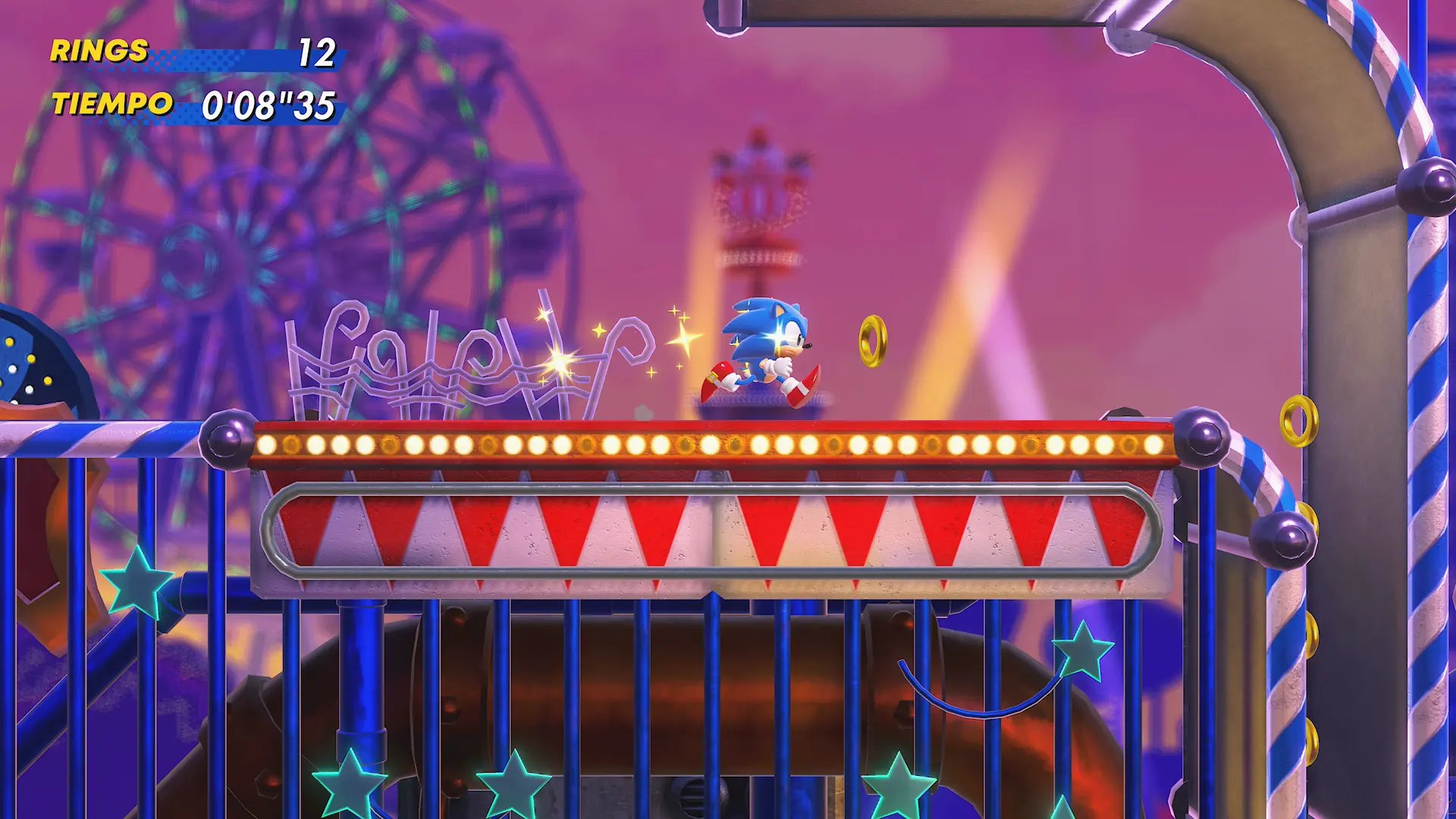 Una de las fortalezas de Sonic Superstars son sus zonas cuidadosamente diseñadas. Cada zona tiene su propio tema y estilo visual, desde la exuberante selva hasta la moderna ciudad futurista. Los niveles están llenos de obstáculos, enemigos y trampas ingeniosamente colocadas, lo que te mantendrá alerta y en constante movimiento. Algunas zonas incluso tienen mecánicas únicas, como montar en trenes de montaña rusa en una zona de casino o transformarte en avatares pixelados en un mundo inspirado en la era de los videojuegos retro. Estos elementos creativos agregan variedad y emoción a la experiencia de juego.