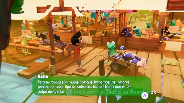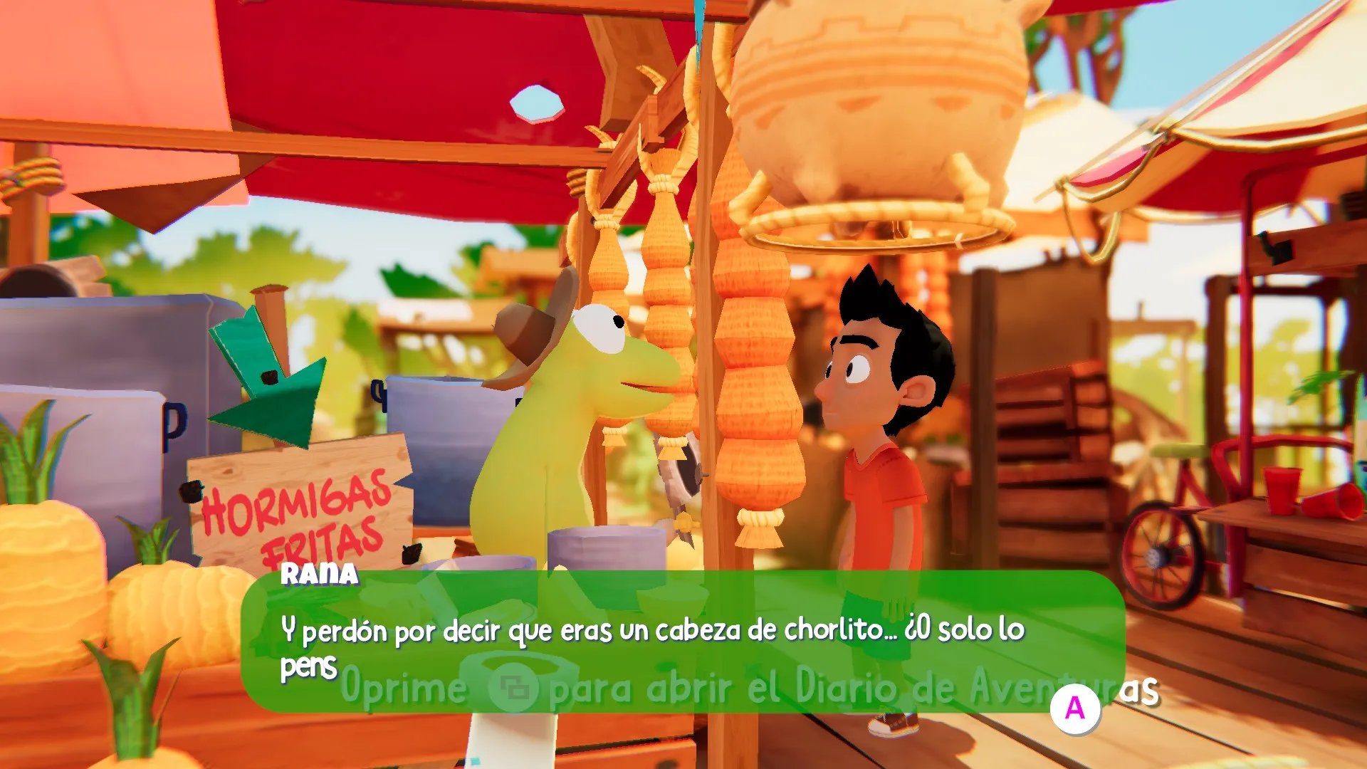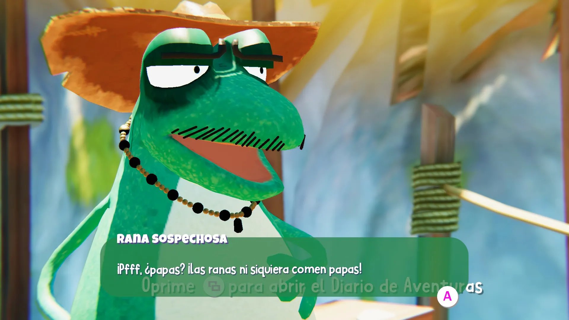 El mundo de SOPA – Tale of the Stolen Potato está lleno de colores y tradición colombiana por todas partes. Encontrándonos con locaciones como un enorme rio, un bazaar de ranas vendedoras, hasta el interior de un enorme pez. Cada locación nos brinda una oportunidad de acercarnos a la colombianidad de su mundo, y dejarnos llevar por la inocencia de su premisa.
