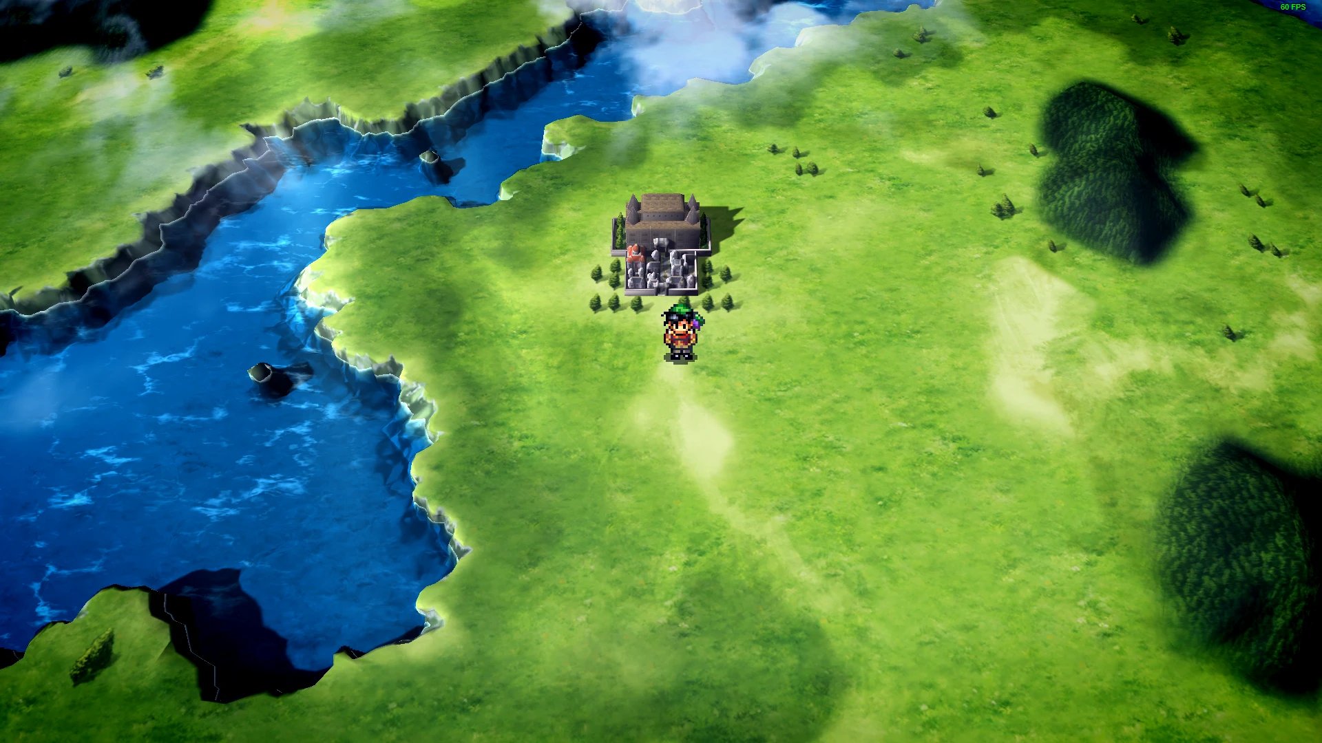 Los fondos han sido completamente redibujados para ofrecer una experiencia visual actualizada. Los escenarios ahora cuentan con texturas de mayor resolución y efectos ambientales mejorados que incluyen nubes en movimiento, llamas parpadeantes y superficies de agua reflectantes. Además, los retratos de los personajes han sido renovados por la diseñadora original, Junko Kawano, específicamente para Suikoden I.