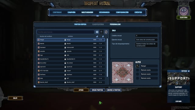 Para los amantes de la competición, Tempest Rising implementa un sistema de emparejamiento basado en Glicko-2, un método realmente sofisticado para calcular con precisión las habilidades de los jugadores. ¿El resultado? Partidas equilibradas donde tu destreza táctica será puesta a prueba contra oponentes de similar nivel. El multijugador incluye tanto encuentros clasificados para los más ambiciosos como partidas no clasificadas para quienes prefieren jugar sin la presión de los rankings. Pero eso no es todo, también tenemos a nuestra disposición: