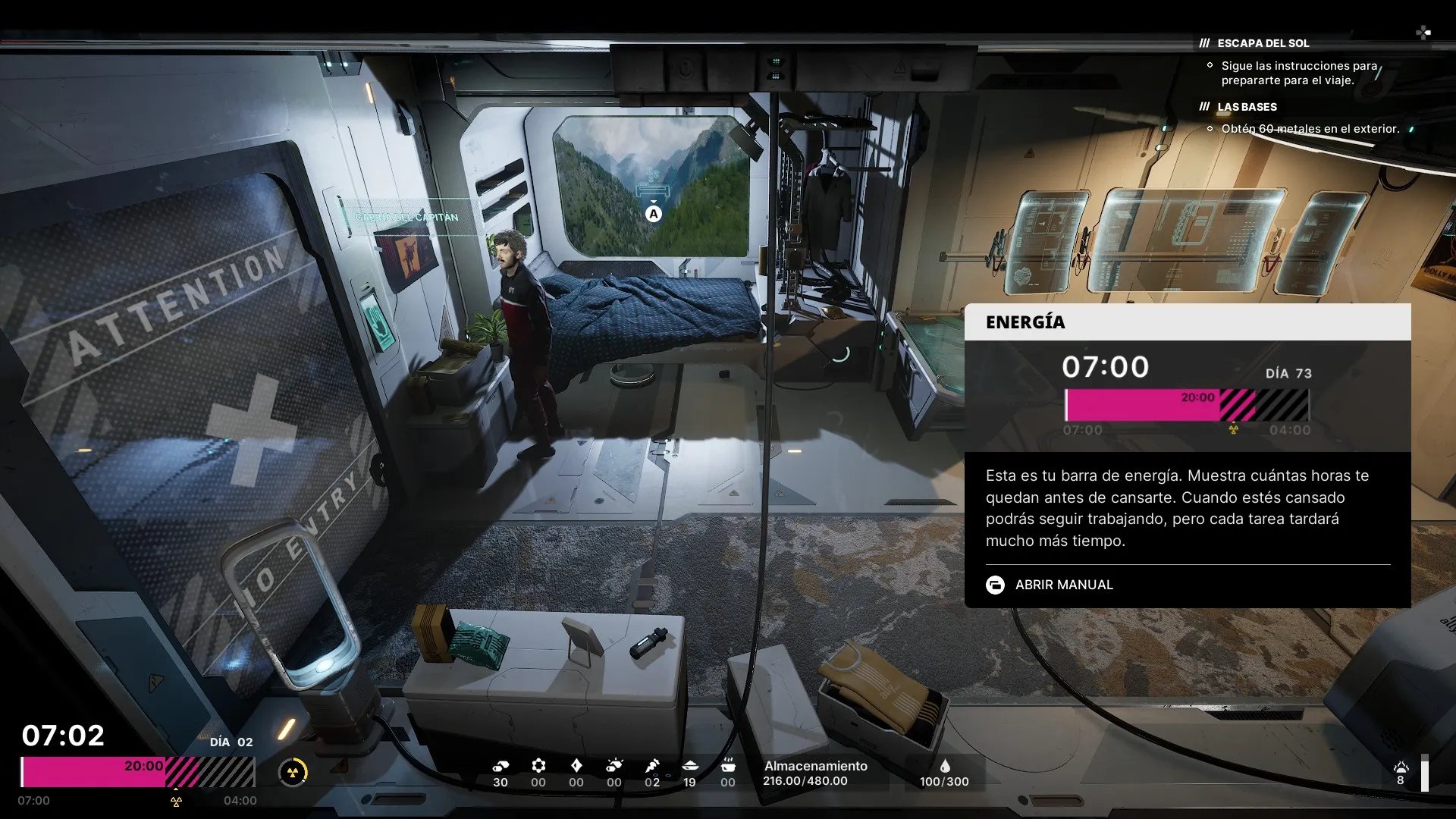 En The Alters, tendremos una barra de energía que determinará cuanto tiempo podremos trabajar en una tarea, antes de cansarnos o exponernos a la radiación de la noche. También cada Alter puede sufrir accidentes, dentro y fuera de la base, y necesitaremos los recursos adecuados para tratarlos.