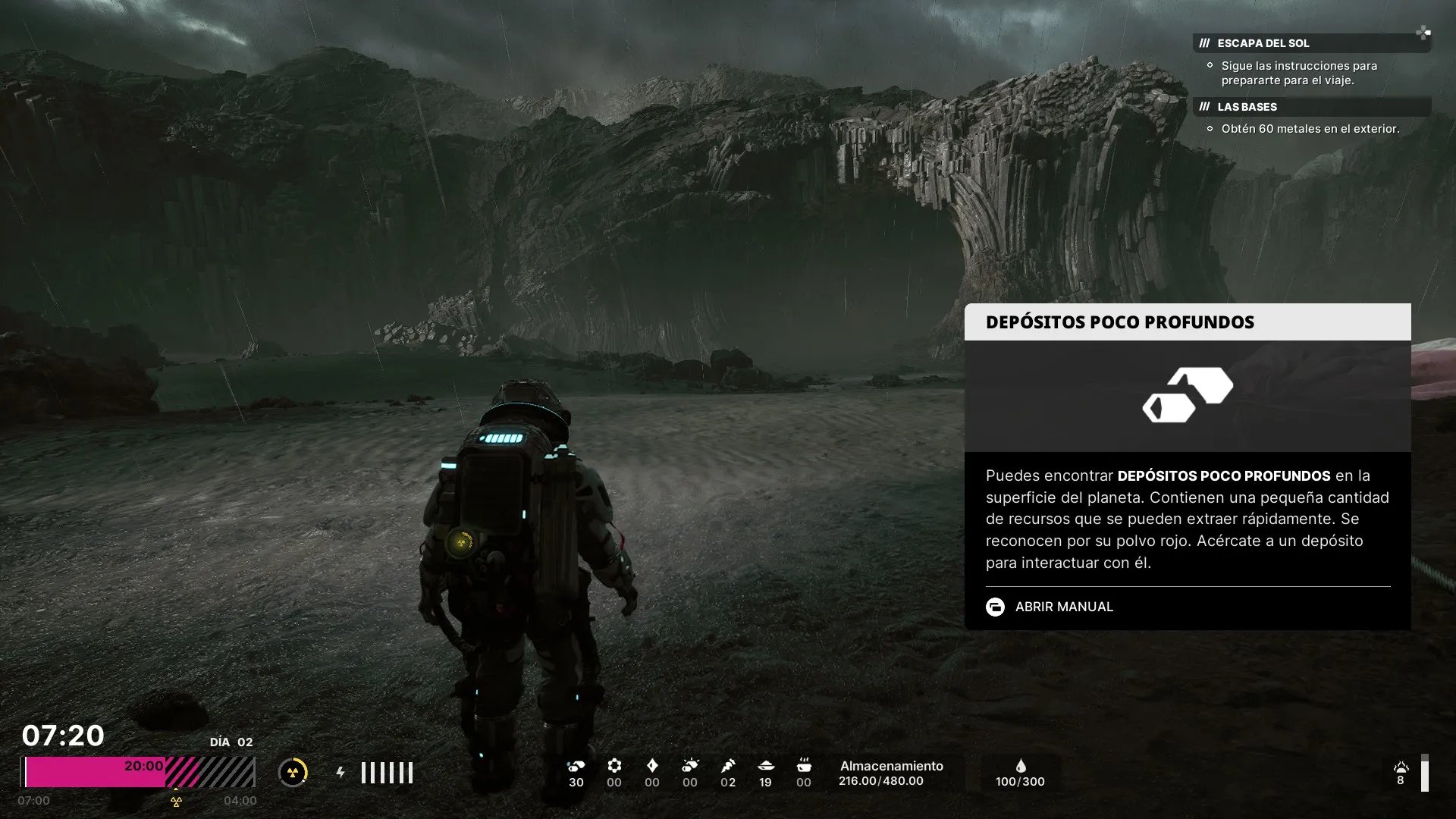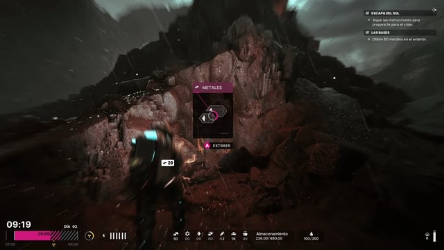 Tendremos que recursos distintos recursos en el planeta para sobrevivir, crear herramientas y expandir nuestra base. Minerales para construcción y materia orgánica para poder hacer comida. Pero el recurso más importante es el Rapidium, ya que al avanzar en el inicio del juego, descubriremos que este mineral tiene la capacidad de acelerar los procesos naturales de la materia biológica.