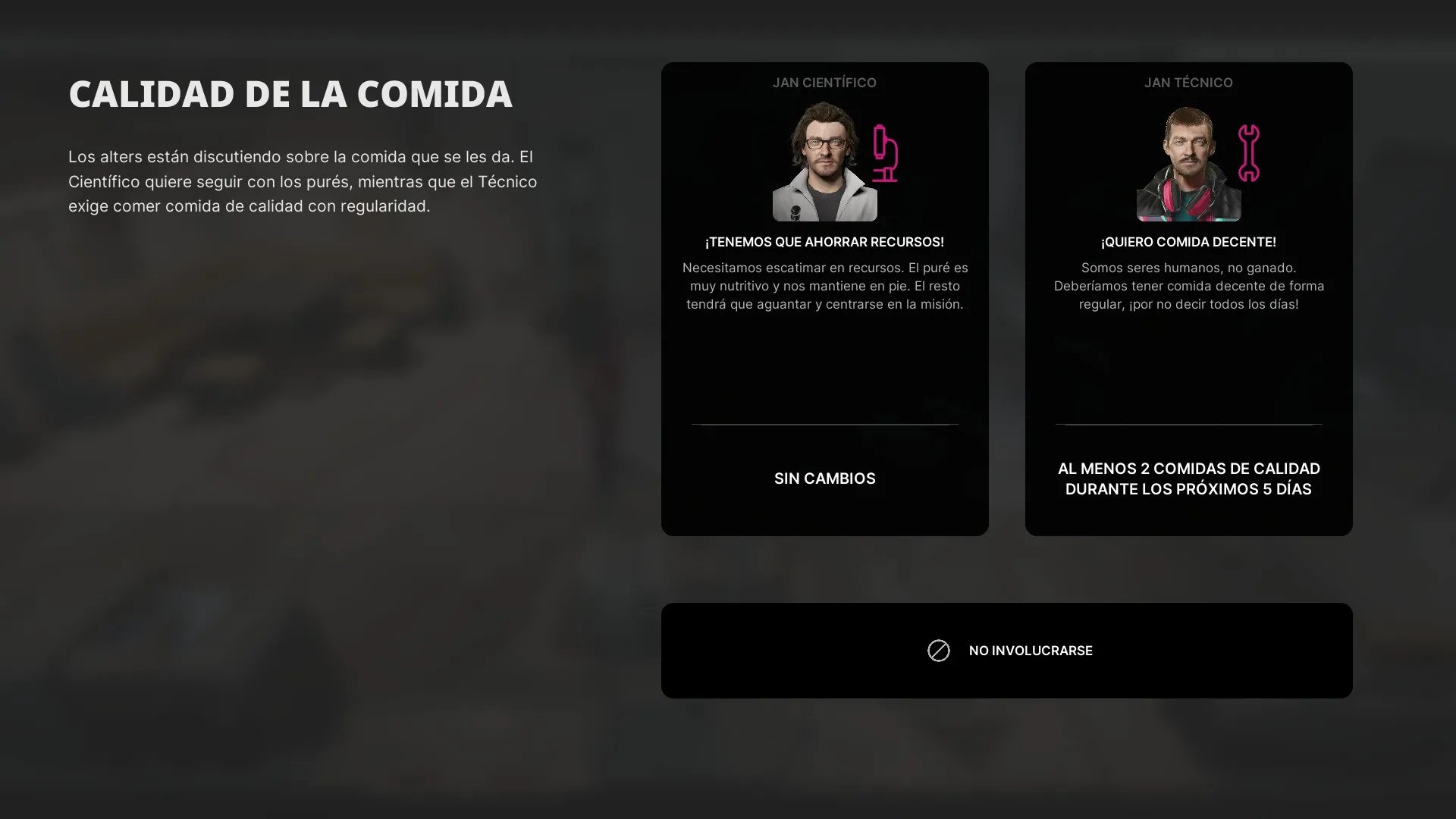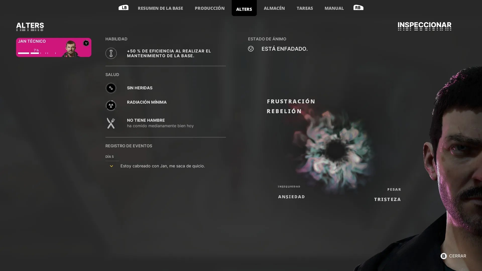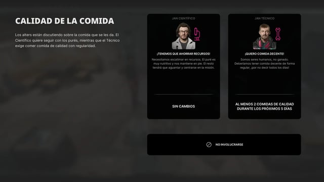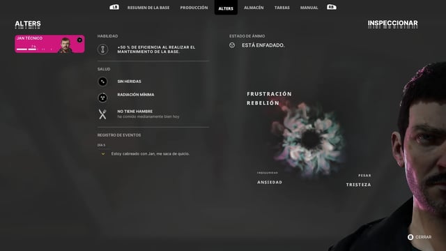 El primer Alter que se crea es Jan Técnico, un Jan que fue más asertivo en un momento de su vida y que terminó aprendiendo más sobre máquinas y como repararlas. Este ayuda al Jan original a solucionar un problema de la base. Claro que verte a una versión de ti mismo es un choque muy grande, y que hace parte de la experiencia de juego.