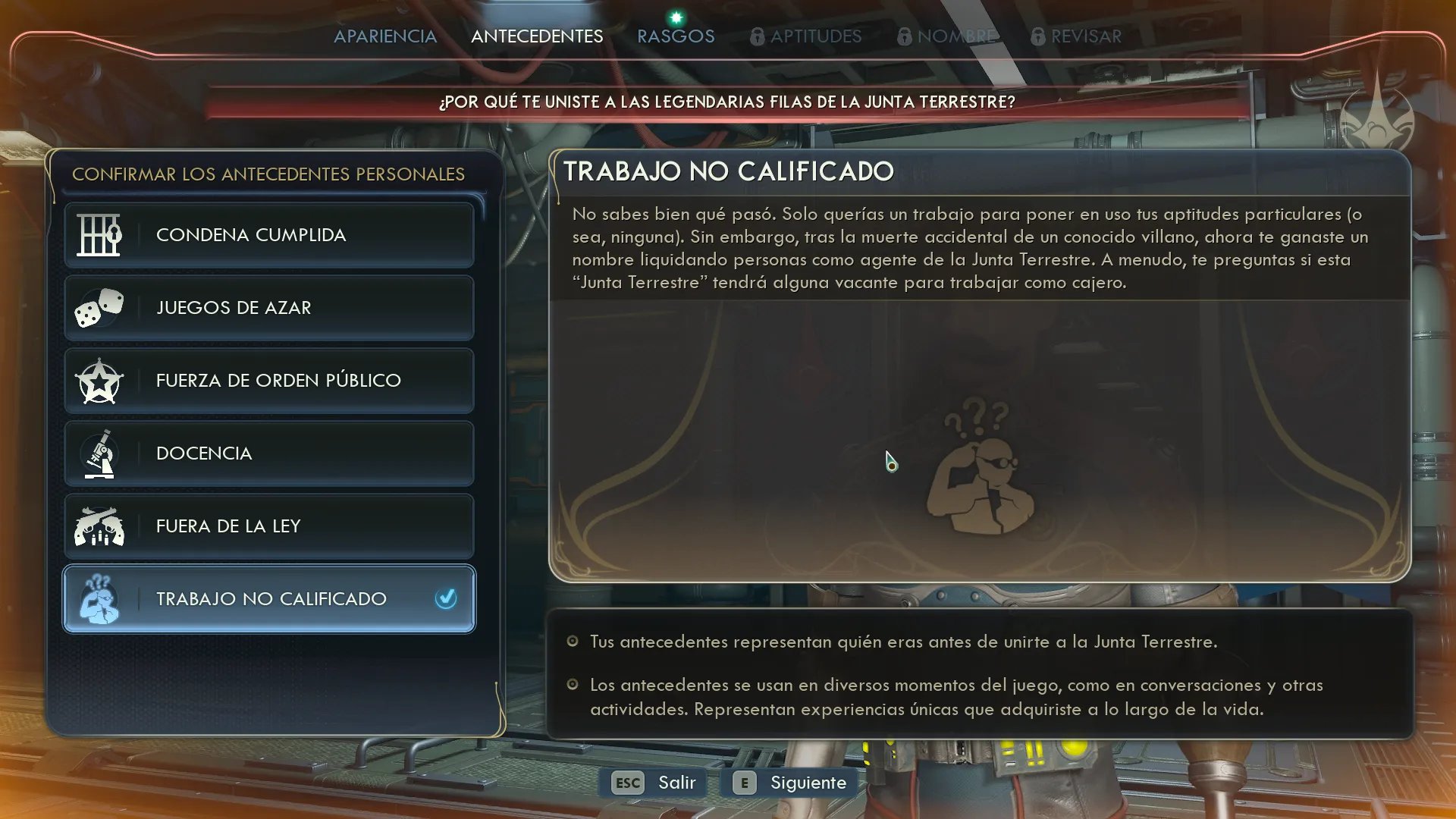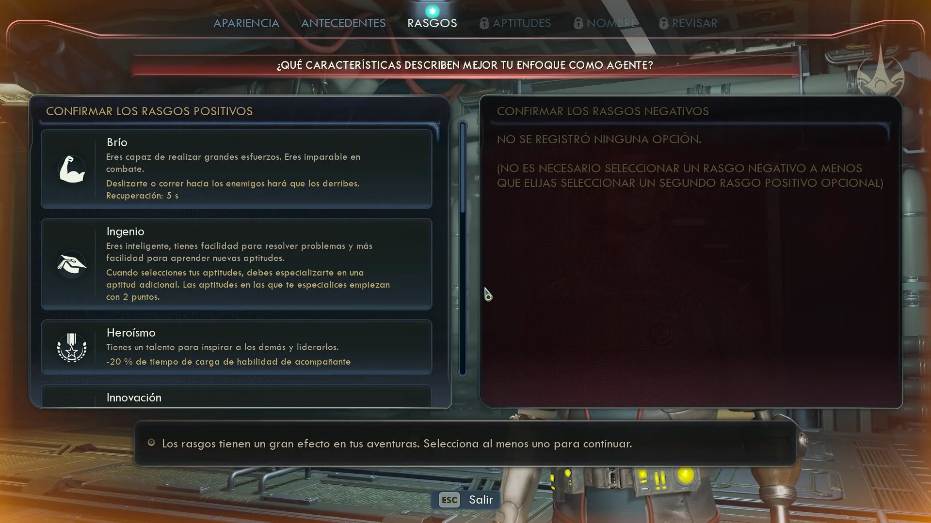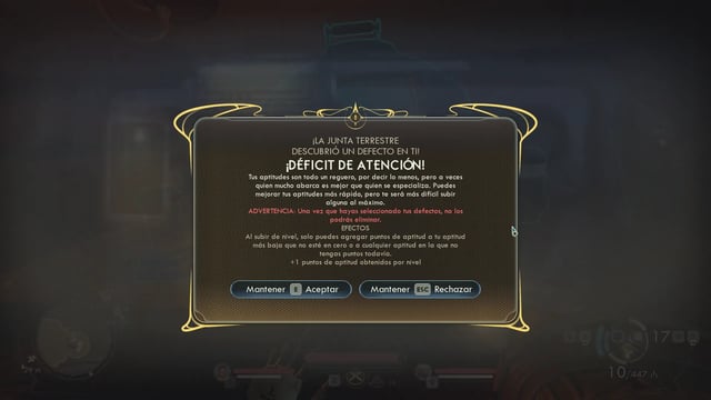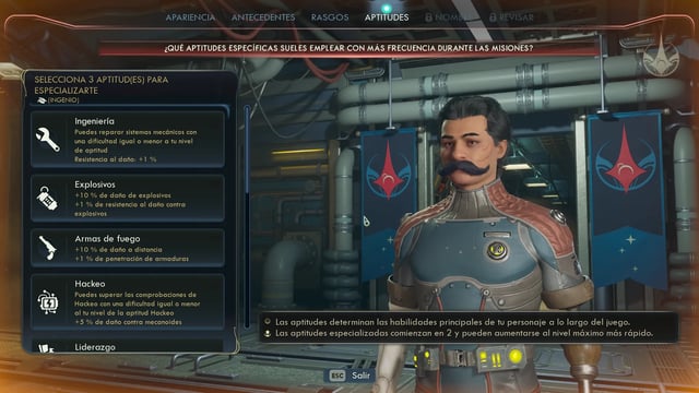 Similar a juegos como The Elder Scrolls o Fallout, en The Outer Worlds 2 crearemos nuestro personaje con un Antecedente, que servirá para abrir opciones de diálogo; Rasgos, que determinarán una ventaja de combate pero también una debilidad; y Aptitudes, que nos ayudarán para abrir opciones de diálogo, resolver situaciones de manera especial y obtener ventajas dentro y fuera de combate.