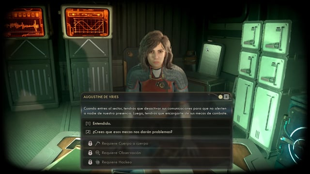 Lo otro es que aunque imita el sistema de puntos de aptitudes de Fallout, en donde nos abren opciones especiales para resolver diálogos o acertijos dependiendo si tenemos puntos en las aptitudes necesarias, los resultados son predeterminados, es decir, si tienes las aptitudes necesarios pasas inmediatamente la prueba; si no los tienes, no puedes seleccionar la opción. Algo interesante que ocurre en Fallout es que aunque tengas 0% en una aptitud, siempre está la posibilidad que tengamos suerte y pasemos la prueba. Son estos detalles que hacen que el juego no se vuelva una simple lista de Aprueba o Reprueba.