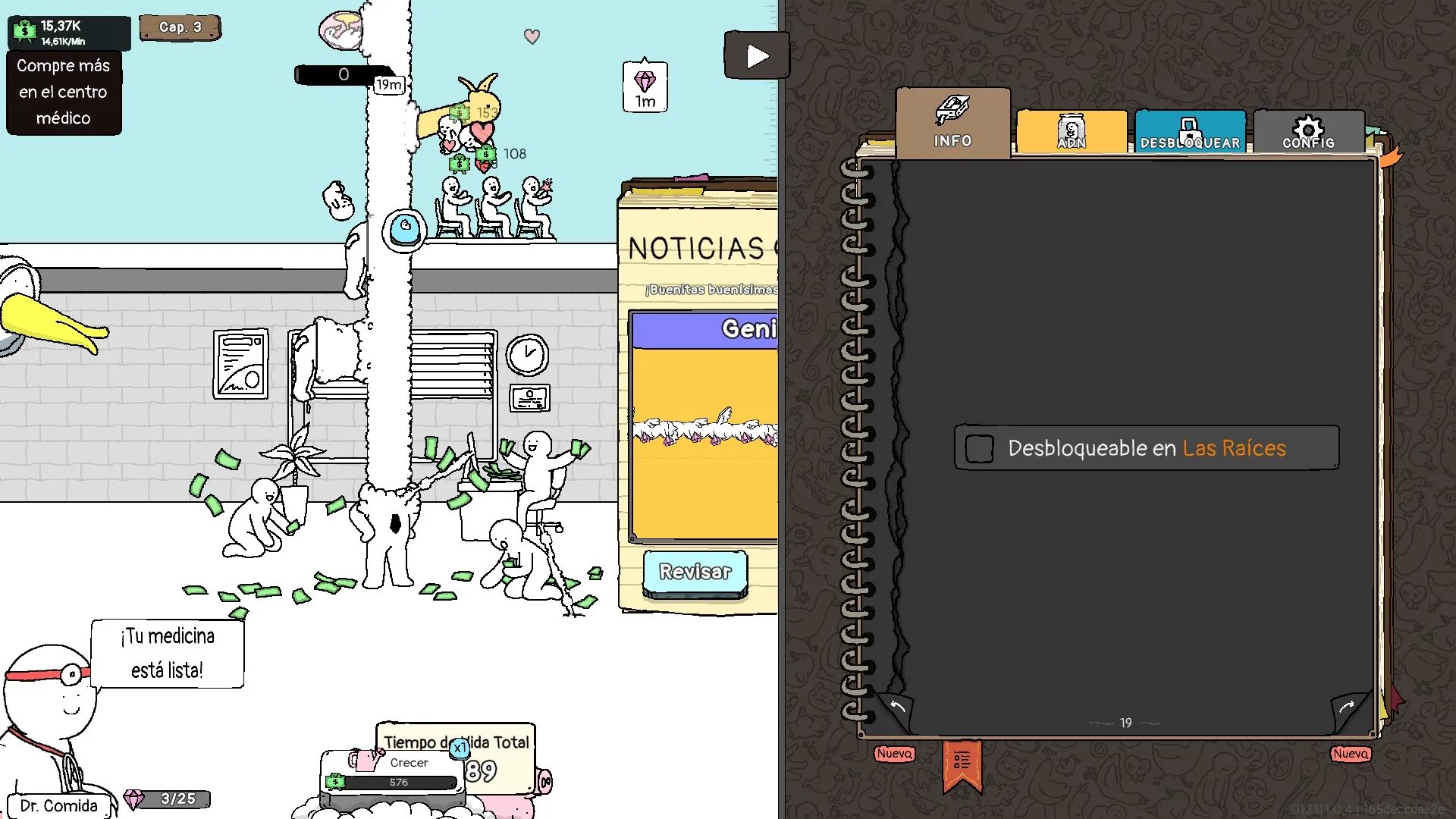 - Incluye interacciones interesantes entre los Tinguis, como su evolución al fusionarse para producir más dinero.