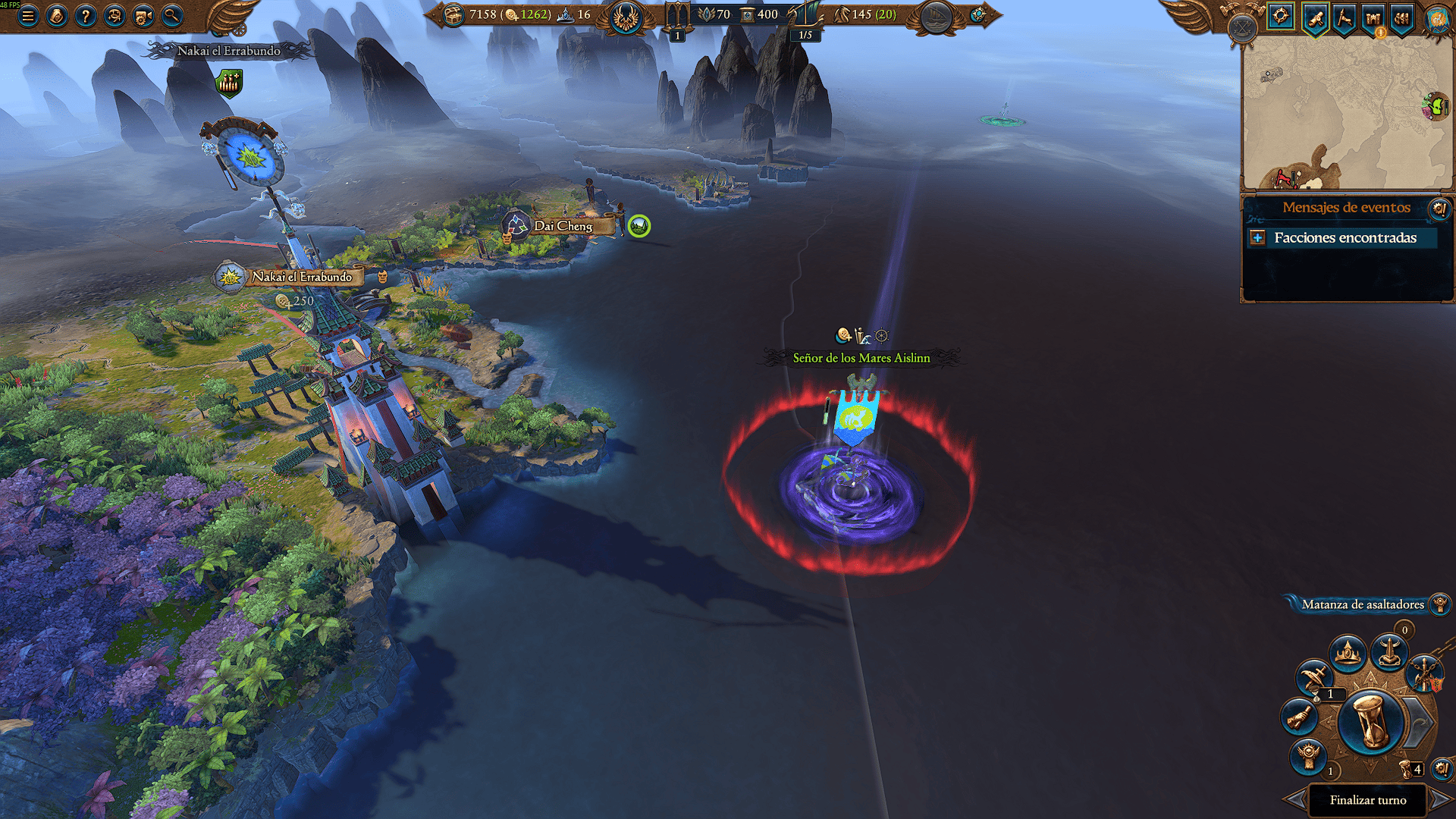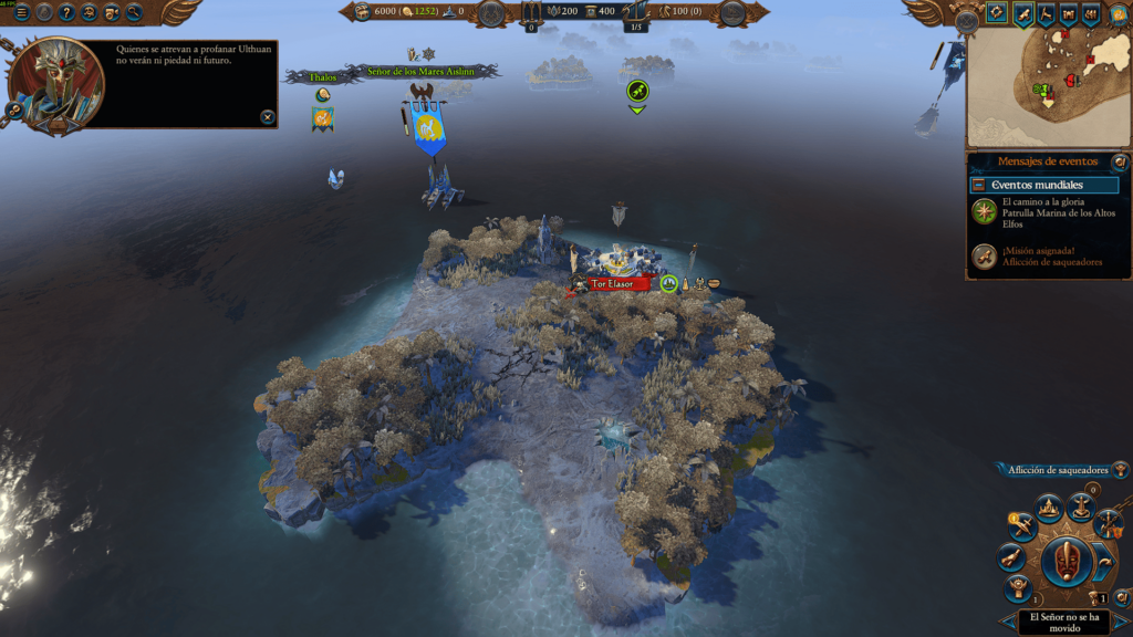 La profundidad de Aislinn dentro del DLC se amplía aún más con el contenido de su propio pack, que lo incorpora como Señor Legendario jugable tanto en Imperios Inmortales como en batallas personalizadas. Su rol como comandante de la patrulla oceánica queda reforzado por una narrativa centrada en su guerra incansable contra Elfos Oscuros, Norscanos y cualquier amenaza contra Ulthuan. Además de los barcos dragón, Aislinn introduce mecánicas adicionales como Ocupación, que le permite delegar asentamientos conquistados a otras facciones élficas mientras mantiene opciones limitadas de construcción, y Dominación, que usa el conocimiento acumulado en puestos marítimos para desbloquear mejoras, unidades élite y apoyo de líderes de otras casas élficas.