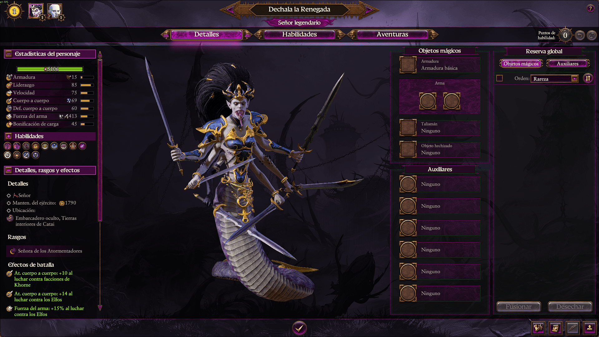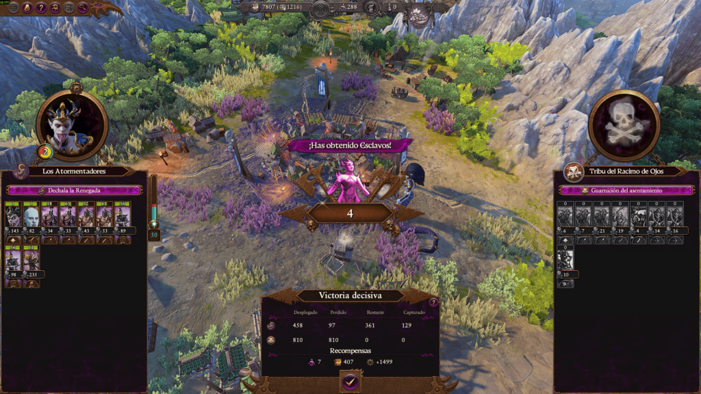 El DLC dedicado a Dechala amplía aún más esta propuesta con su introducción formal como Señor Legendario jugable en Imperios Inmortales y batallas personalizadas con un estilo ofensivo, móvil y basado en la presión constante. Mecánicas exclusivas como Decadencia (un sistema que escala recompensas, poderes, corrupción y reclutamiento demoníaco instantáneo) potencian su identidad como ejército dominado por el exceso y la corrupción que se expande poco a poco. Podremos usar Esclavos como recurso, activar habilidades devastadoras para impulsar su imperio seleccionando, poderes exclusivos o rituales de poder. Su roster adicional incluye unidades clave de larga distancia con ballestas y campeones barbaros, reforzando un enfoque táctico rápido, cruel e implacable.