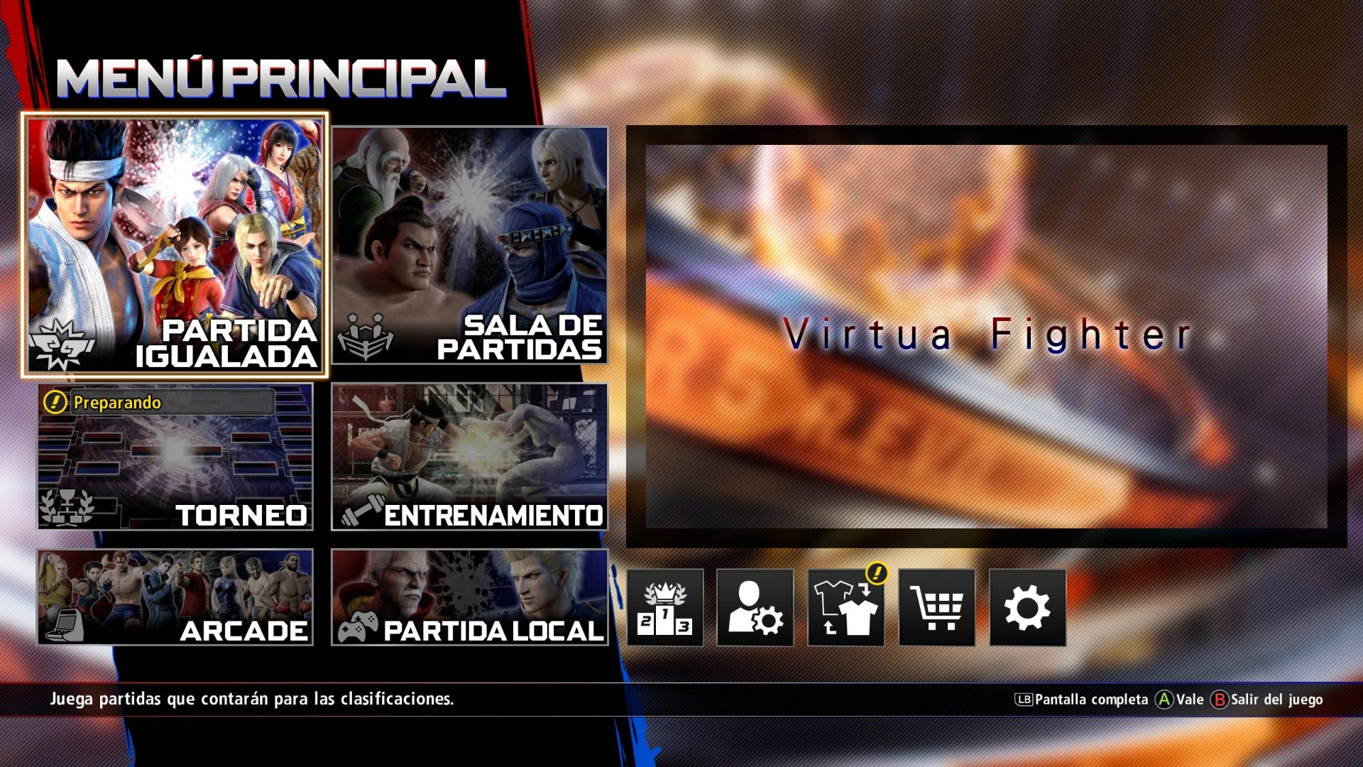 - Versus: Para enfrentarte a un amigo local o a la CPU