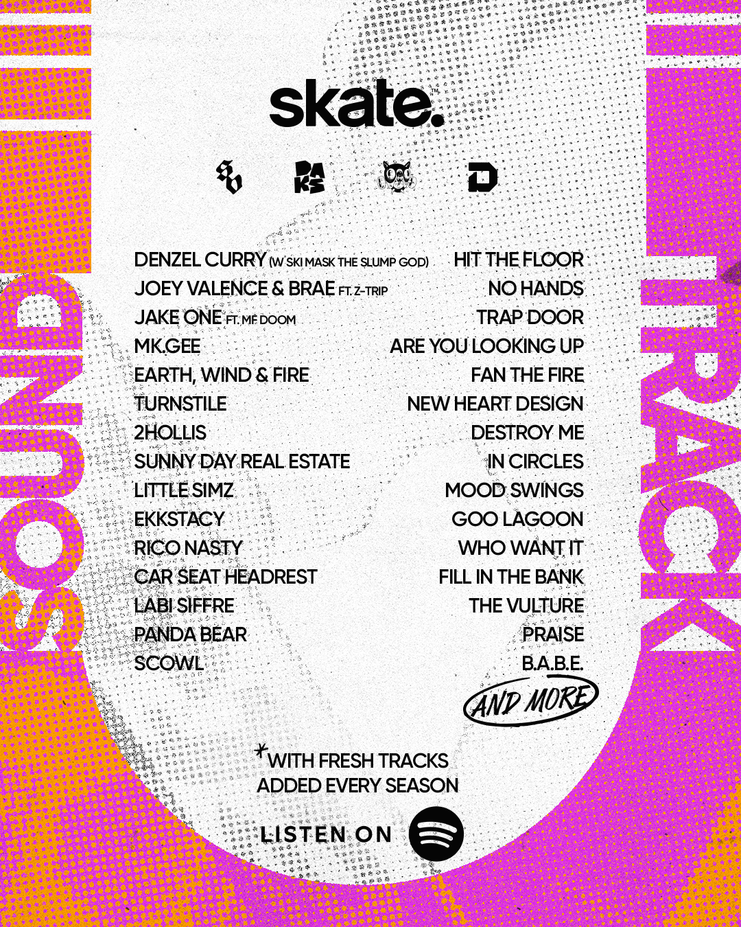 Electronic Arts reveló el listado completo de canciones que conformarán la banda sonora de skate., título que llegará en acceso anticipado el próximo 16 de septiembre. La selección musical destaca por su frescura y energía, con artistas de renombre como Denzel Curry, Little Simz, Turnstile y otros talentos emergentes.