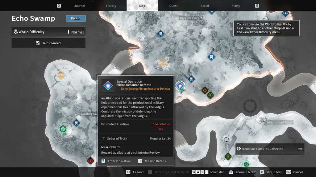 Las misiones de defensa en Echo Swamp (Sterile Land, Hard Mode recomendado) son ideales para niveles intermedios. Enfrenta hordas masivas de enemigos, generando 15-19 niveles por run hasta el primer reward (15-20 minutos). Repite 3-4 veces para llegar de 1 a 40. En Normal Mode, sigue siendo efectiva para principiantes, pero con menos XP.